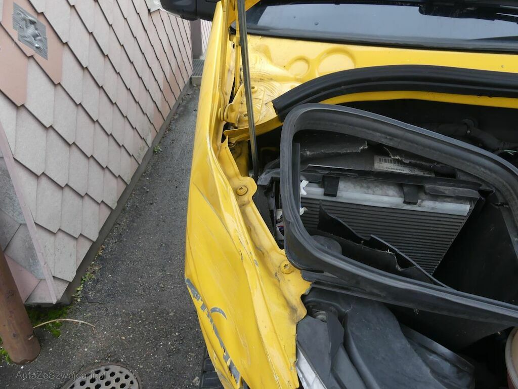 Motorhaube, Kotflügel links und rechts, Frontmaske, Scheinwerfer, Stossstange, Radhausblech rechts, Holmen oben links und rechts, Luftansaugkasten, Verkleidungen und Abdeckungen.