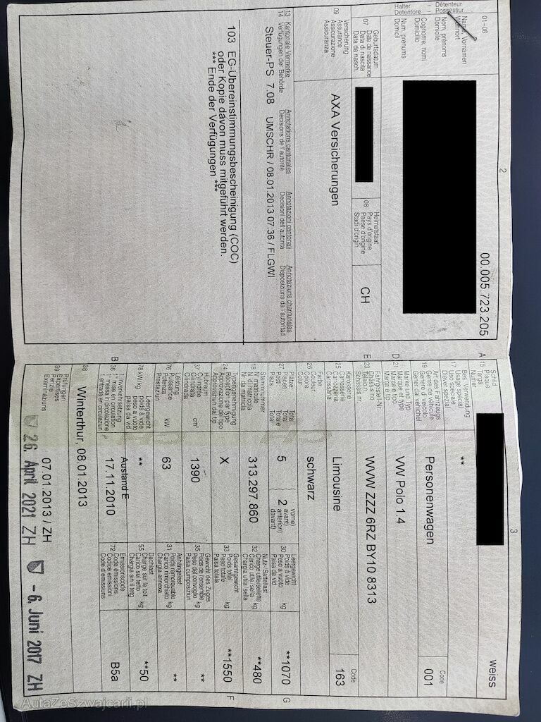 | Information | Nur 1 Schlüssel Service fällig Kein MFK Viele Schäden |