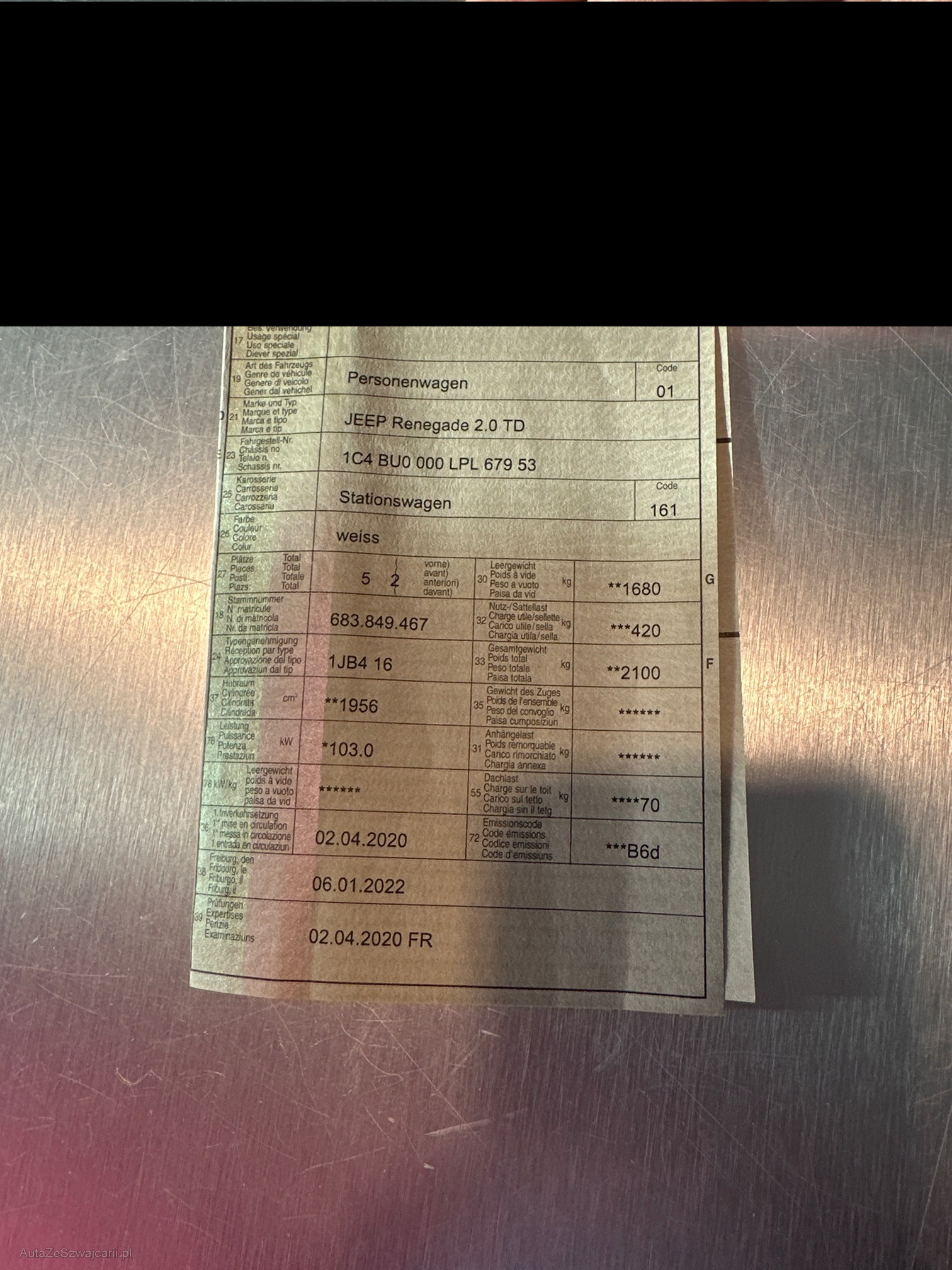 | Kommentar | Gepflegter Jeep Renegade Diverse kleine Kratzer und Beule siehe Bilder! Es wurde kein Werkstatttest gemacht, für sichtbare und nicht sichtbare Mängel wird nicht gehaftet. Wir testen und prüfen nicht alle Funktionen vom Fahrzeug. Das Risiko liegt somit vollumfänglich beim Käufer. Nach erhalt des Zuschlags, gibts es keine Nachverhandlung, auch wenn nicht deklarierte Mängel zum Vorschein kommen. Ab Platz ohne Garantie oder Gewährleistung. |