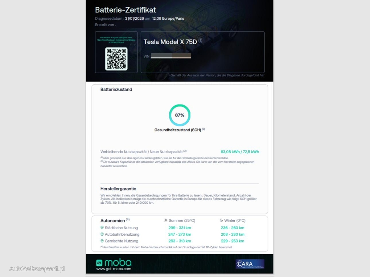 | Zusatzinformationen | Die Hochvoltbatterie wurde geprüft und ist funktionsfähig. Das Fahrzeug wird mit der HV-Batterie verkauft.Zusätzlich werden 3 neue Sommerreifen mitgeliefertDie (vom Fahrzeugexperten) ermittelten Reparaturkosten beziehen sich auf das versicherte Ereignis. Allfällige zusätzliche, nicht versicherte Schäden/Vorschäden, sind in den Reparaturkosten nicht enthalten. Die deklarierten Ausstattungsmerkmale können von der effektiven Ausstattung abweichen.AchtungBei einem Hochvoltsystem - Spannungsfreiheit prüfen. Sicherheitshinweise und Betriebsanleitungen des Herstellers konsultieren und befolgen. |