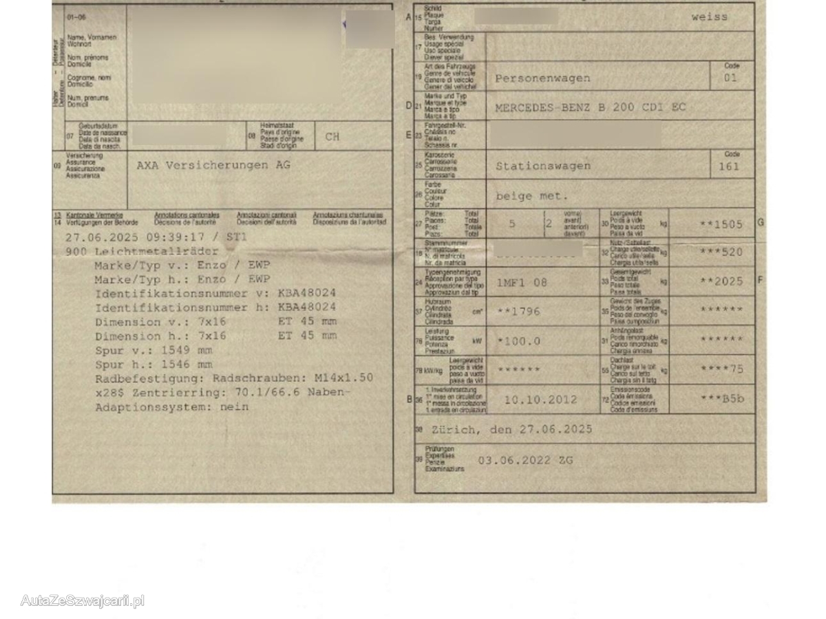 | Fahrzeugausweis | Vorhanden |