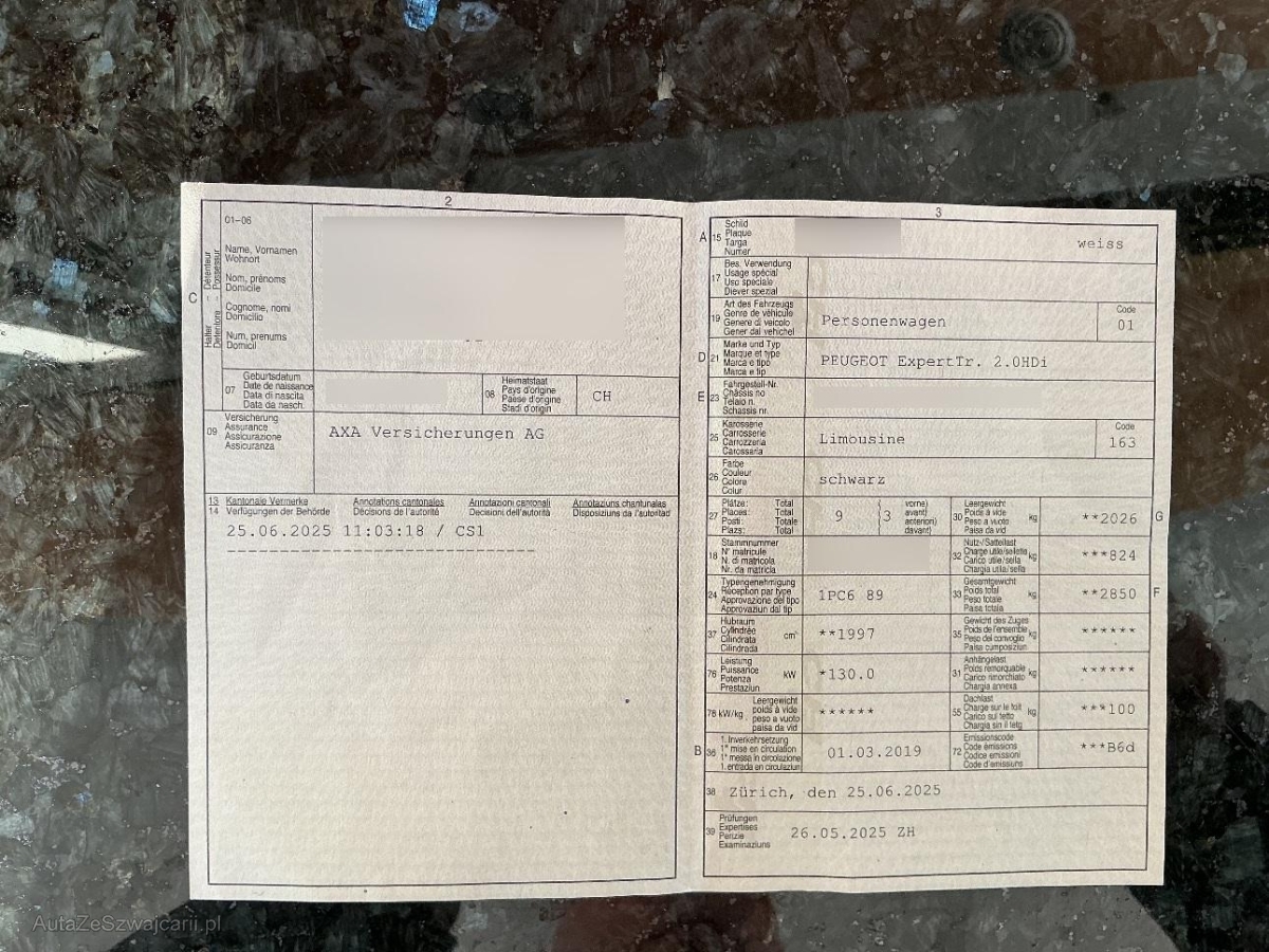| Fahrzeugausweis | Fehlt |