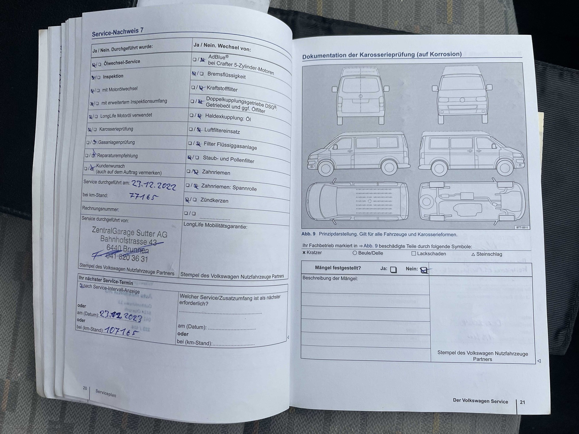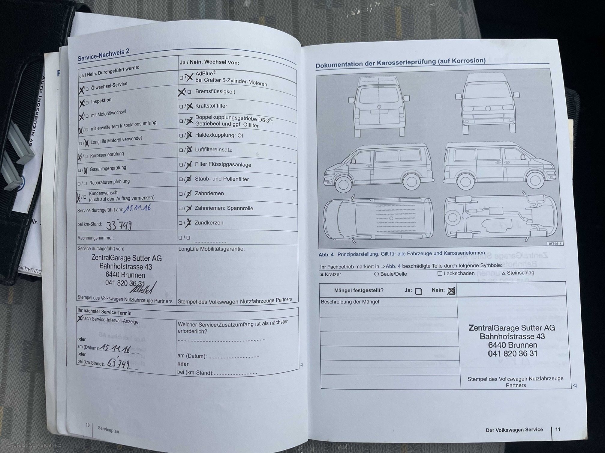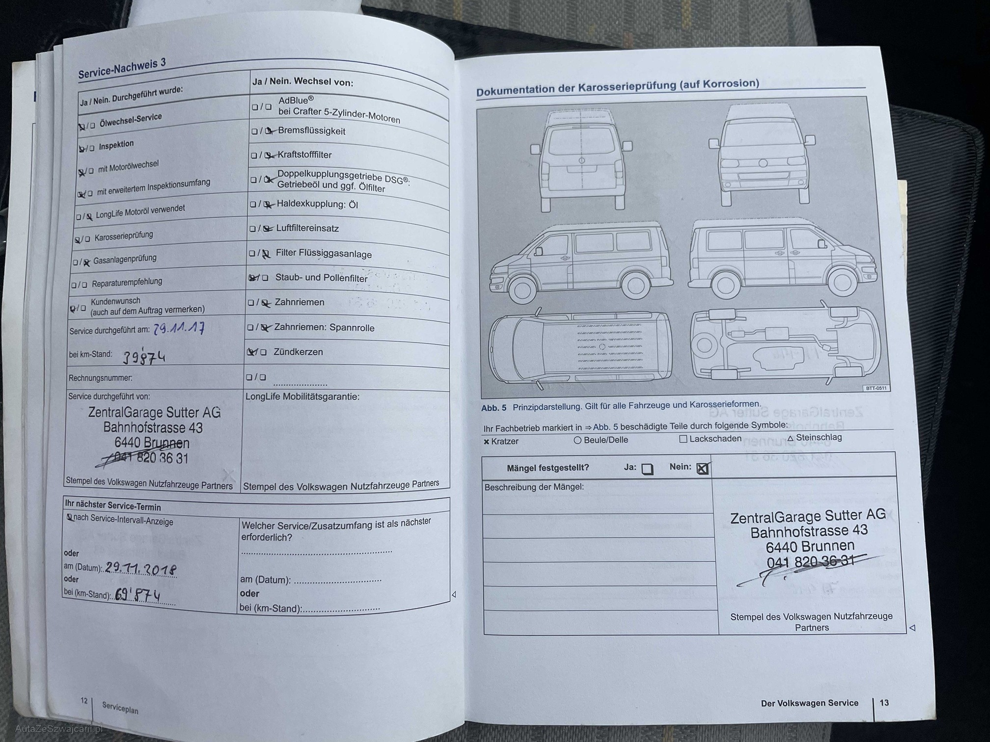 | Kommentar | Loch im Stossfänger hinten links Zustand Bremsen vorne und hinten ca. 50% Profiltiefe Winterbereifung: Vorne: 6mm, hinten: 5.5mm Zustand innen: Siehe Fotos Zustand aussen: siehe Fotos ------Diese Auflistung ist ohne Gewähr auf Vollständigkeit------------- |