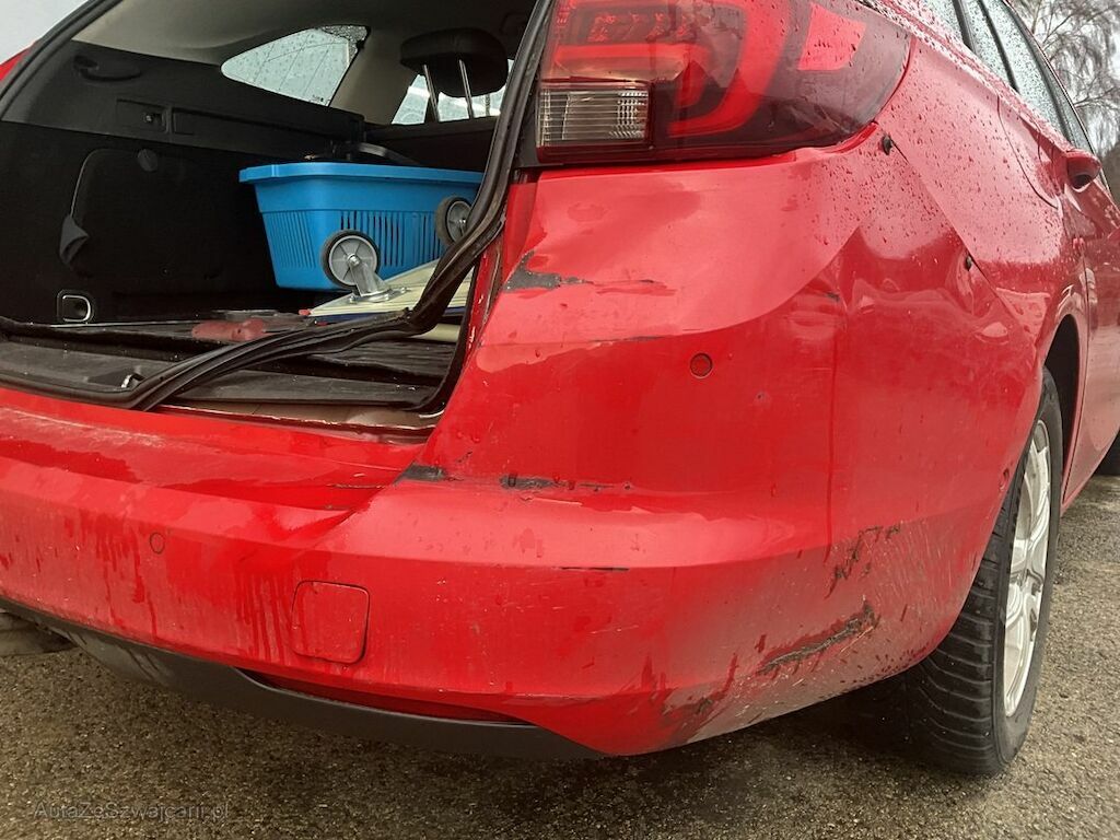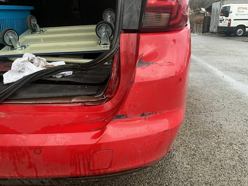 Pare-chocs arrière, hayon et tôle arrière endommagés.