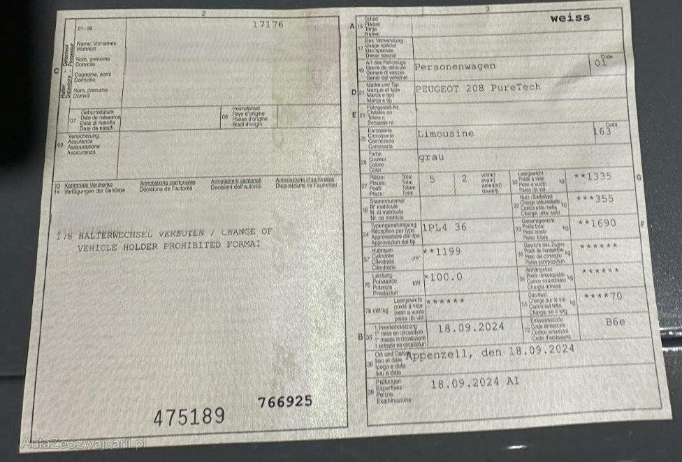 | Fahrzeugausweis | Vorhanden |