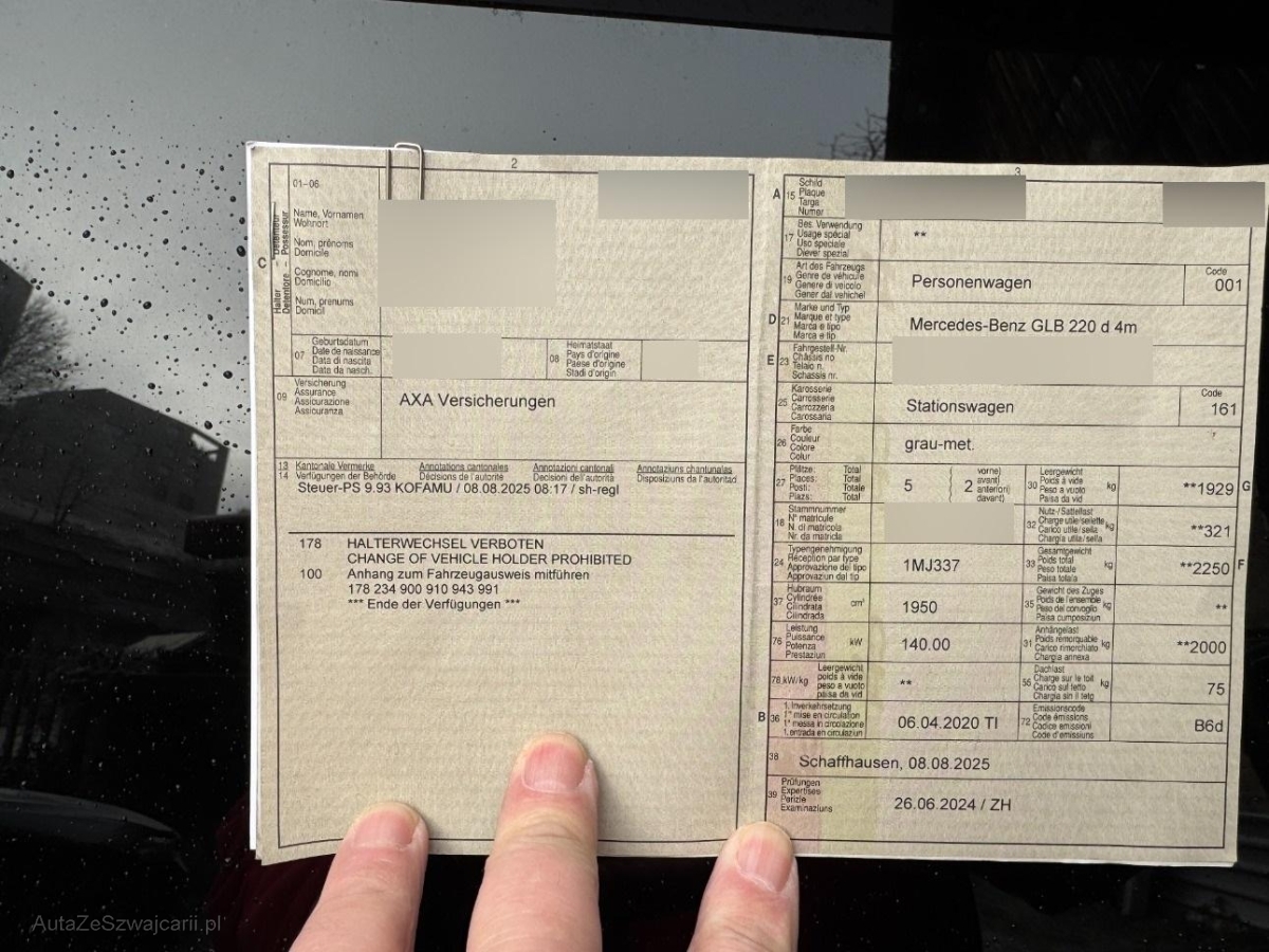 | Fahrzeugausweis | Vorhanden |