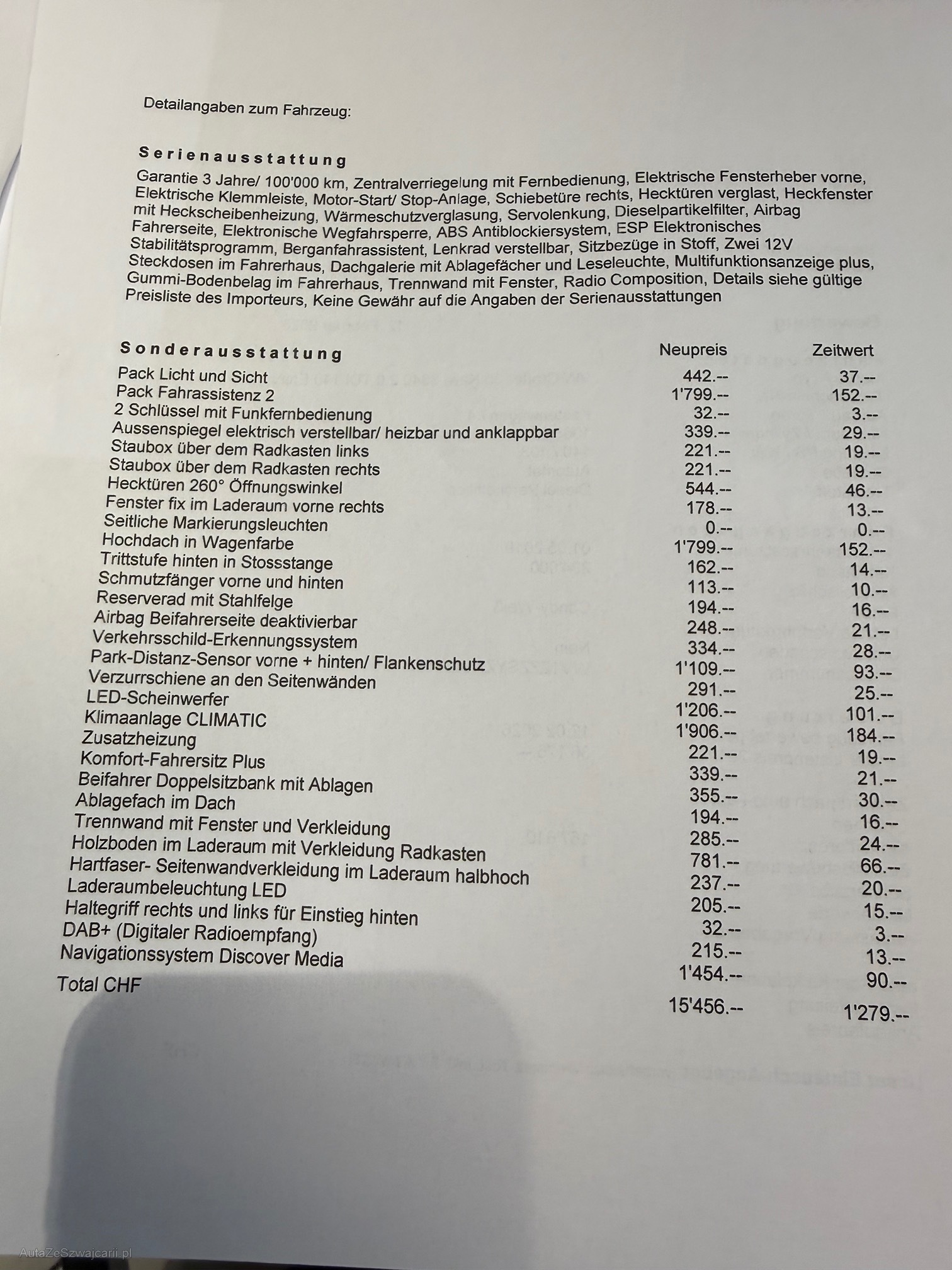 | Kommentar | Karosserie gemäss Fotos, Linke Hecktüre Trittstufe, Seitenwand Radlauf li & rechts, Schiebetür, Kotflügel vorne links Kein Werkstattest durchgeführt, Kauf auf eigenes Risiko ohne jegliche Nachgewährschaft Langstreckenfahrzeug viele Autobahnkilometer |