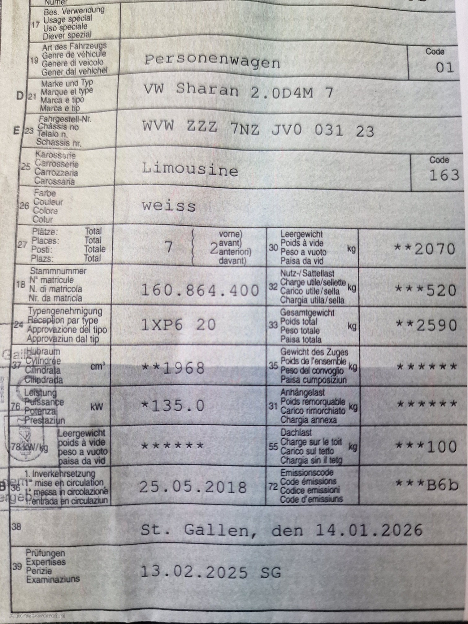 | Kommentar | - gute Ausstattung: 7-Plätzer, Navi, elektr. Schiebetüren und Heckklappe, AHK, 2 Kindersitze integriert, Rückfahrkamera, Ledersitze, uvm. - komplette Bordmappe fehlt (Betriebsanleitung, Serviceheft, etc.) Servicehistorie als PDF angefügt - Hutablage fehlt - Stofffänger vorne wurde von anderer Garage kürzlich ersetzt - Anhängerkupplung nicht im Fahrzeugausweis eingetragen - Fahrzeug noch im Kundenbesitz - Kein Eintauschtest / Diagnose durchgeführt - keine Nachverhandlung und / oder Nachwährschaft |