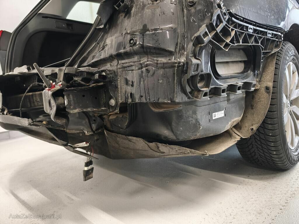 Durch das Ereignis ist das Fahrzeugheck erheblich beschädigt und gestaucht worden. Die Seite rechts inkl. den Anbauteilen ist ebenfalls beschädigt und gestaucht. Das Dach ist im Bereich hinten rechts deformiert und gestaucht. Die Front ist im Bereich links beschädigt.