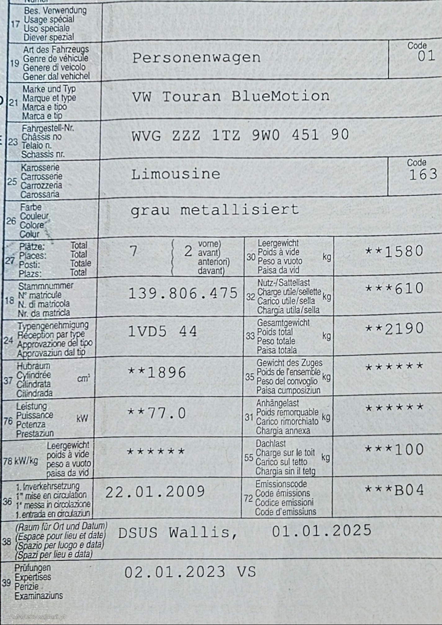 | VIN | WVGZZZ1TZ9W045190 |