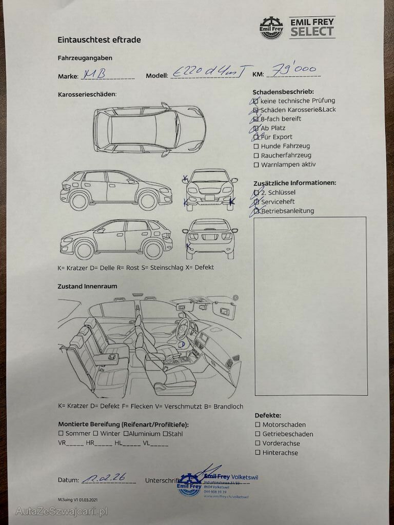 | Information | -CH Fahrzeug -Head-up, Distronic, Anhängerkupplung, Ambientebeleuchtung, 360° Kamera, Memory-Sitze -Keine technische Prüfung (Werkstatttest) vorgenommen -Diverse Schäden an Karosserie/Lack. -8-fach bereift. -Fahrzeug ab Platz, ohne Garantie und Aufbereitung. -Fahrzeug ist für Export -DPF/FAP Filter nicht kontrolliert |