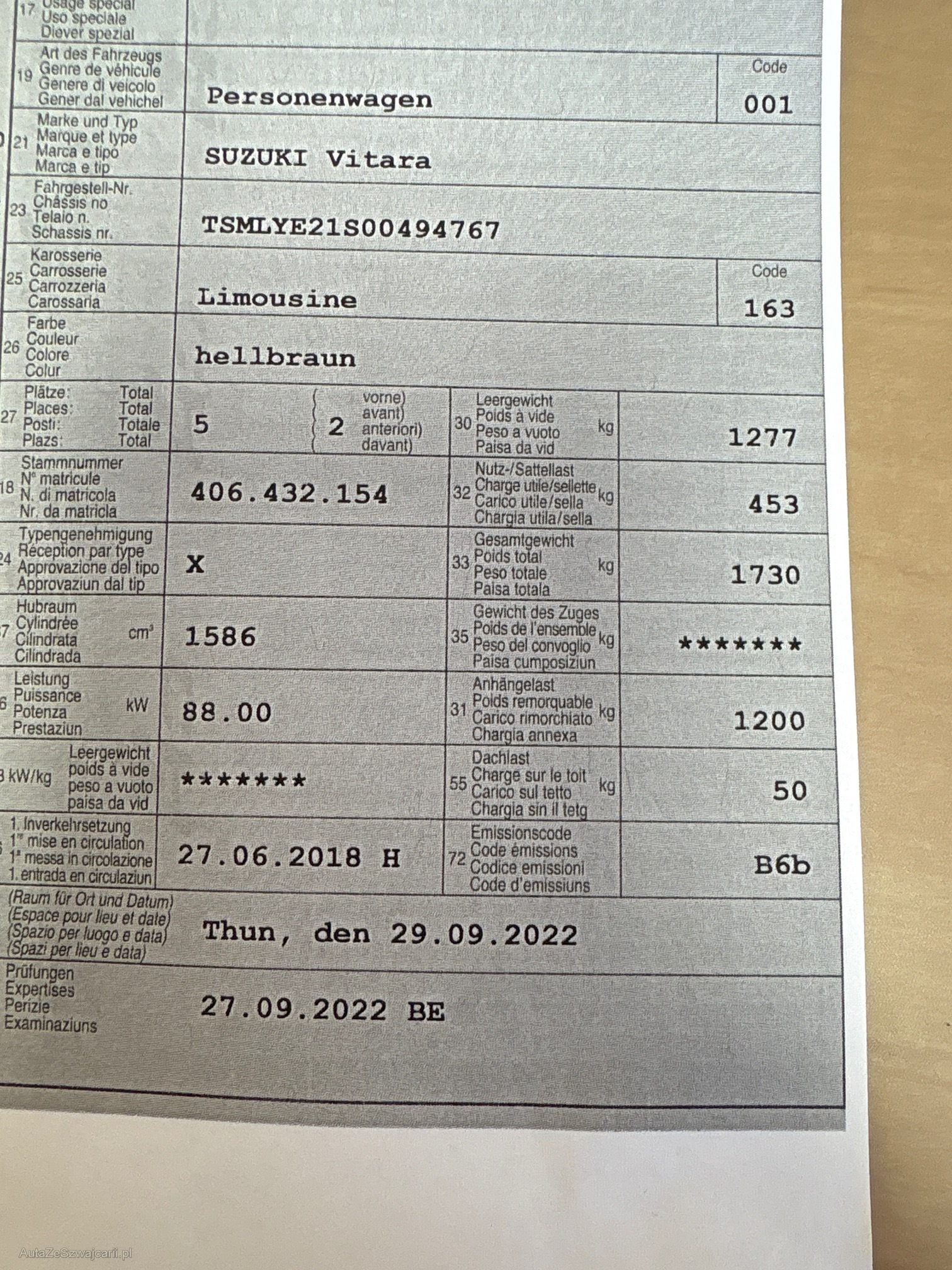 | Kommentar | Technisch gepflegtes Fahrzeug, letzter Service am 11.2025 mit 66'400km. Anhängerkupplung abnehmbar. Stossfänger hinten defekt, Tür VR Grosse Delle. Stossfänger VL Lackschaden. Sommer + Winterrad Alu. |