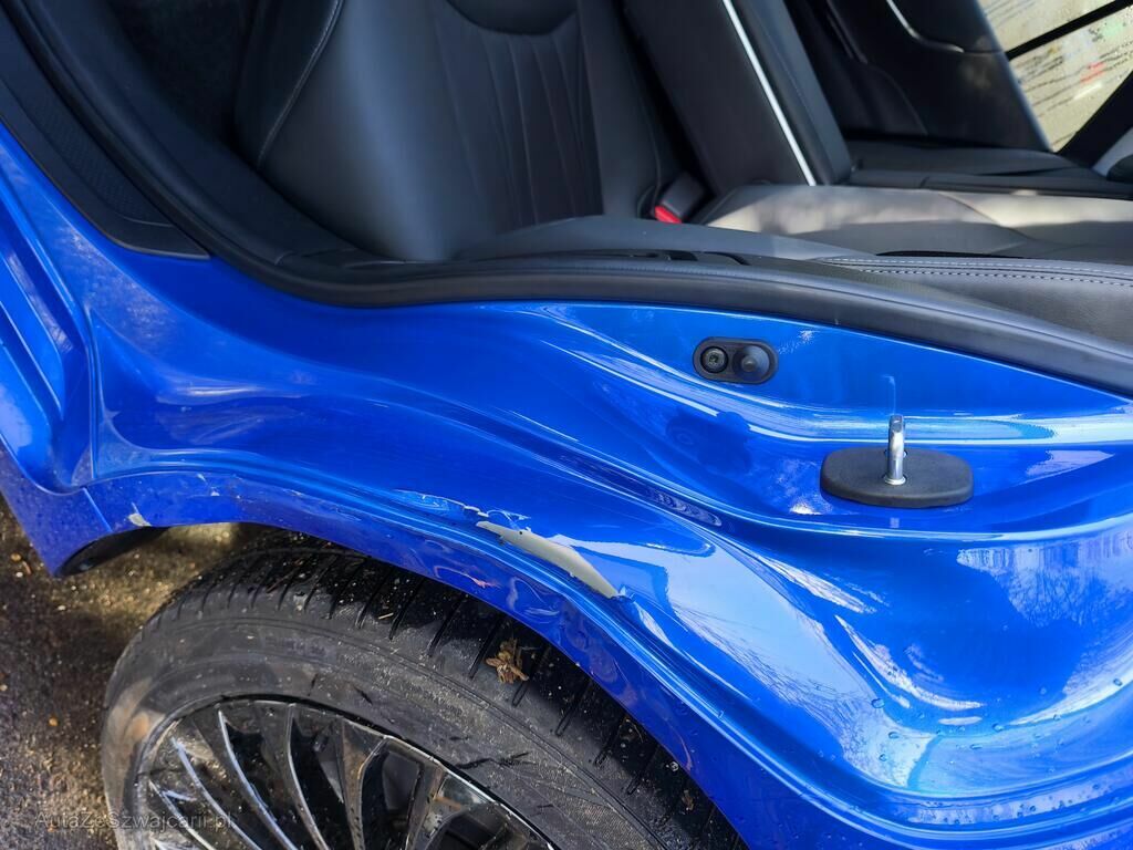 Porte avant droite complète, montant B droite, porte arrière droite, aile arrière droite, doublure intérieure d'aile arrière droite, feux arrière droite, pare-chocs arrière, jupe arrière, jante arrière gauche, réserve sur la géométrie arrière.