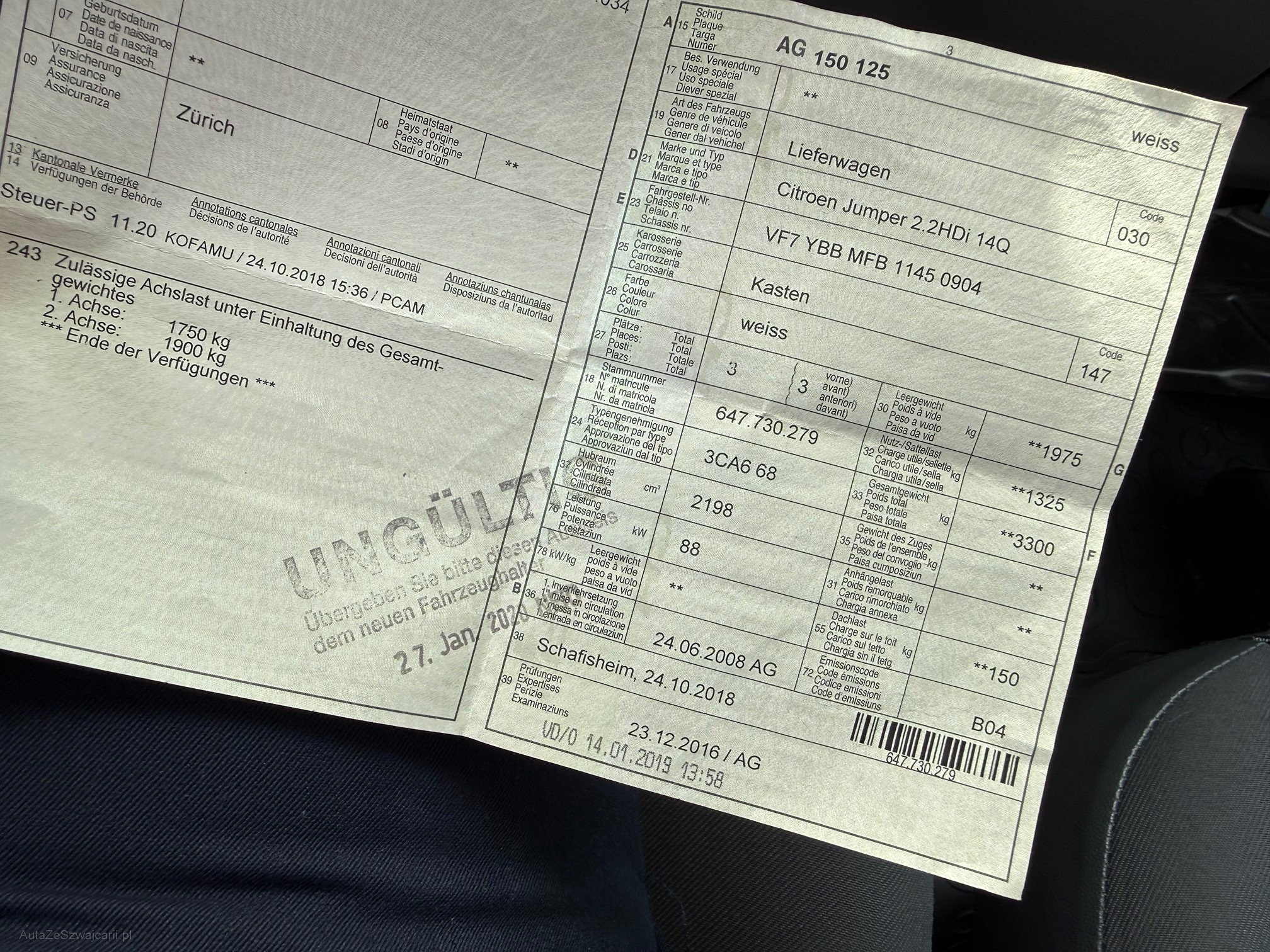 | Kommentar | Es wurde keine Werkstattexpertise durchgeführt - ab Platz Stossdämpfer vorne links machen geräusche |