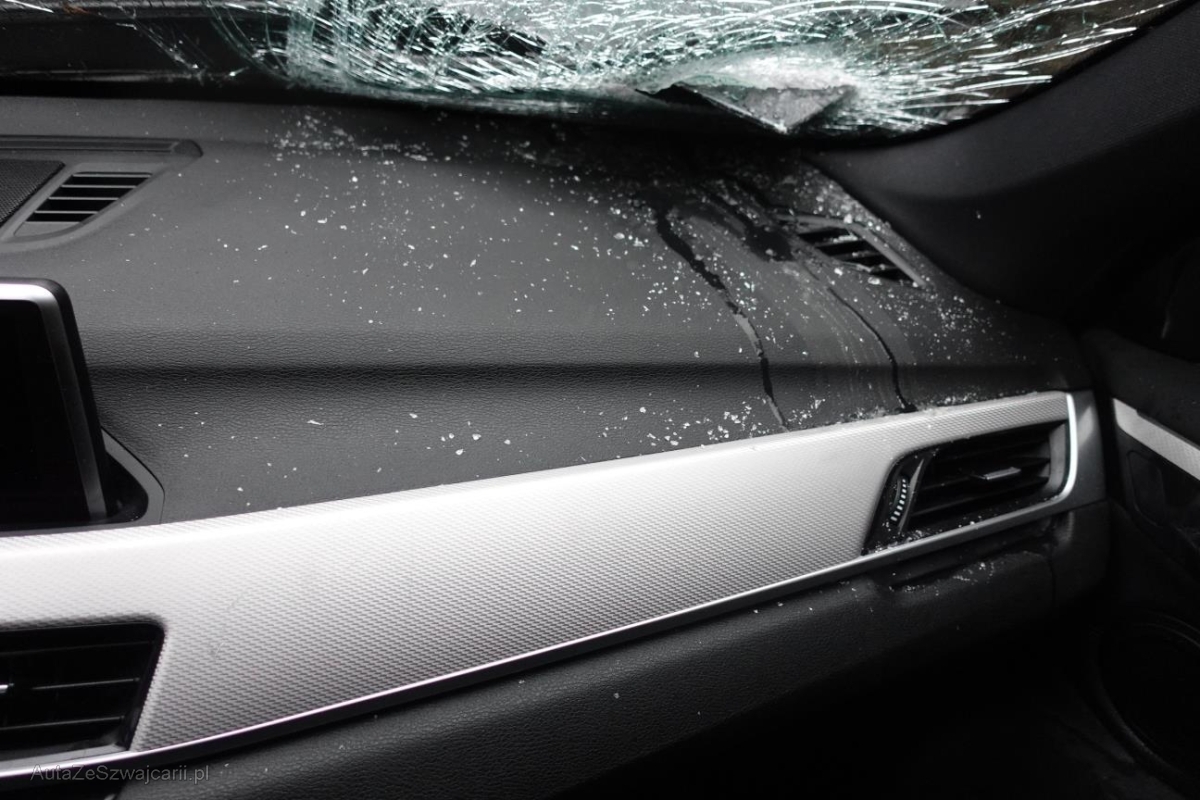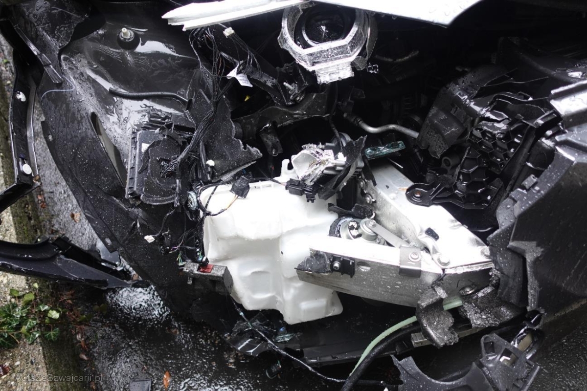 | Schadensbeschreibung | Le véhicule a subi un choc inférieur. ATTENTION : Le véhicule ne démarre pas, batterie faible et verrouillage du capot bloqué. Essieu avant endommagé |