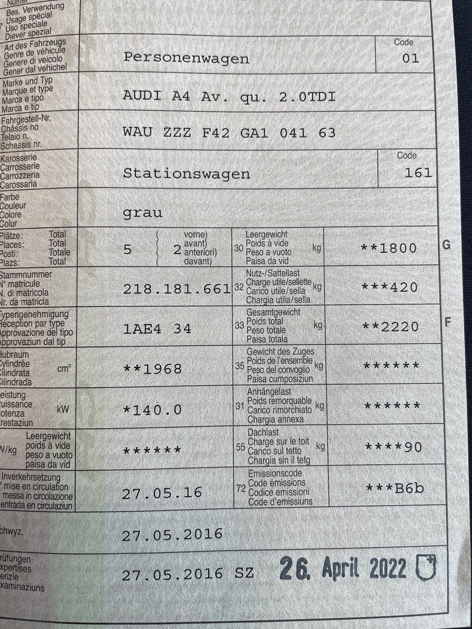 | VIN | WAUXXX |