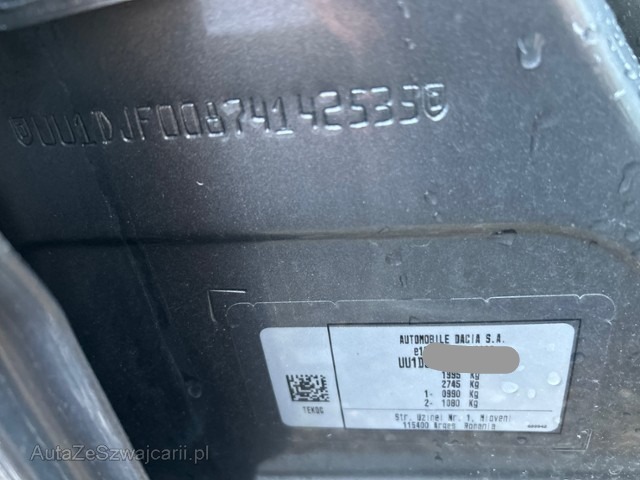 | Condition_and_Equipment | Zustand Fahrzeug muss transportiert werden (Höhe und Breite beachten). Fahrzeug ist NICHT fahrbar. Fahrzeug ist NICHT rollbar. Bereifung Fahrzeug wird mit Winterräder abgegeben. --- Rechts Rechte Seite beschädigt. Front Front rechts eingedrückt. Achse Aufhängungsteile vorne rechts beschädigt. Lenkgetriebe ist beschädigt. Innenraum Armaturenbrett ist beschädigt. Gurtstraffer vorne ausgelöst. Glas Windschutzscheibe ist gerissen. Sonstige Schäden Div.Carrosserie Teile sind leicht beschädigt. --- Serienaustattung Airbag Fahrer und Beifahrerseite Elektrische Fensterheber vorne + hinten Aussenspiegel elektrisch verstellbar und heizbar ABS Antiblockiersystem Nebelscheinwerfer Zentralverriegelung mit Fernbedienung Lenkrad verstellbar Regensensor Reifendruck-Kontrollsystem RDK Deaktivierung Beifahrerairbag Windowbags vorne + hinten Servolenkung elektrisch Rückfahrkamera Tempomat mit Geschwindigkeitsbegrenzer ESP/ Hill Holder Fahrersitz mit Armlehne Kindersitzverankerung ISOFIX hinten Fahrersitz höhenverstellbar Elektrische Parkbremse Einparkhilfe hinten Klimaautomatik Stop + Start System LED-Scheinwerfer Getönte Scheiben hinten LED Tagfahrlicht Spurhalteassistent LDW Details siehe gültige Preisliste des Importeurs Keine Gewähr auf die Angaben der Serienausstattungen Leichtmetallfelgen 16" schwarz Müdigkeitserkennung (Tiredness detection) Notruf Verkehrsschild-Erkennungssystem Lenkrad in Kunstleder Media-Display Keycard Handsfree Sonderausstattung Metallic-Lackierung Garantieverlängerung 5 Jahre oder 100'000km/ Dacia Assist. Sonstige Ausstattung und Zubehör Gemäß Vertrag, Vorbereitungs- und Zulassungskosten. |