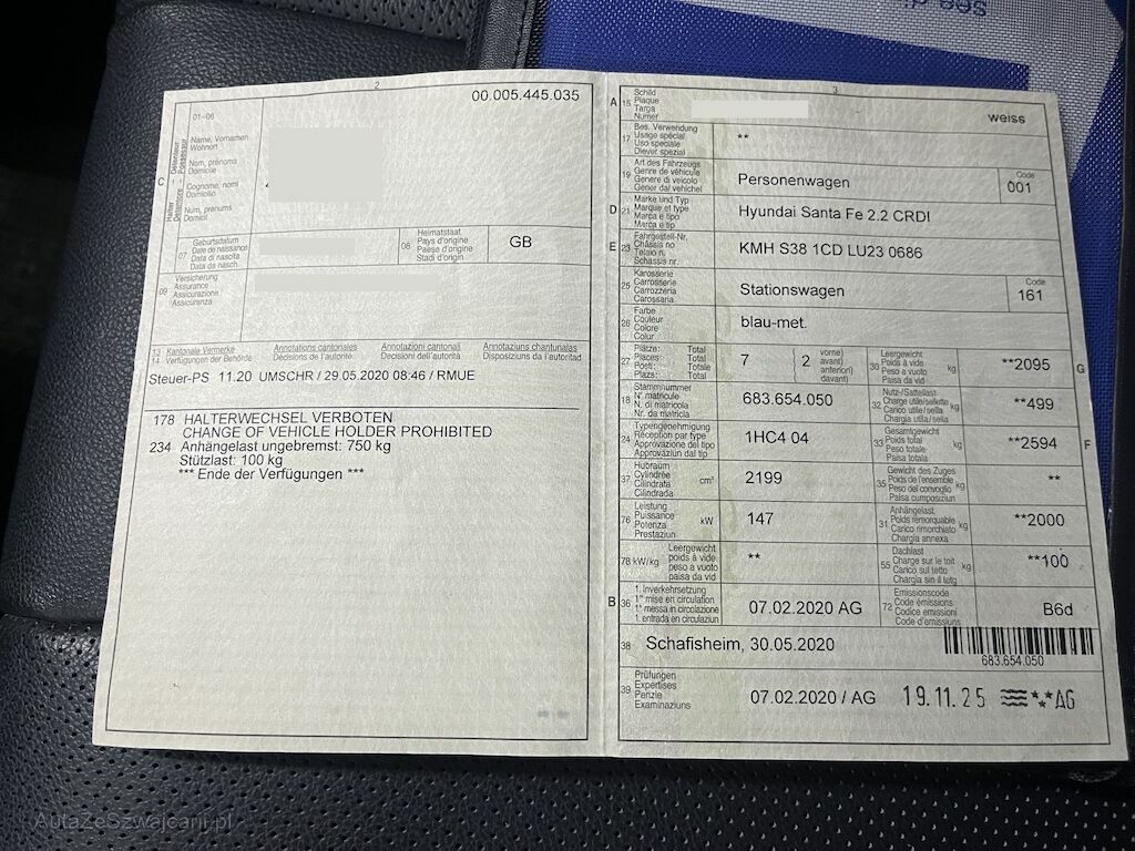 | Typ | Santa Fe 2.2 CRDi Vertex 7P |