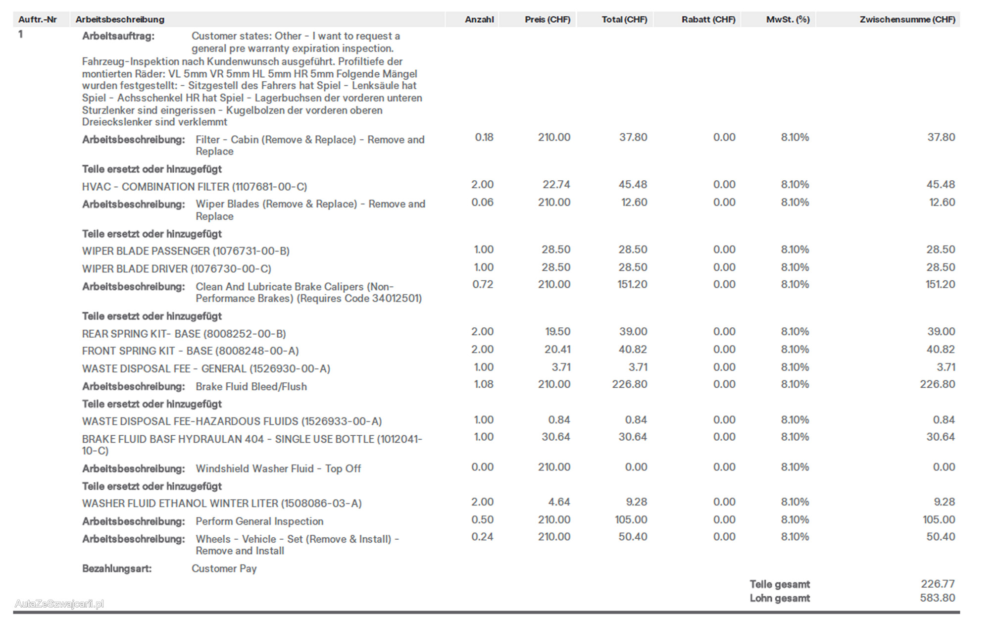 | Vordere Bremsen müssen ersetzt werden | No |