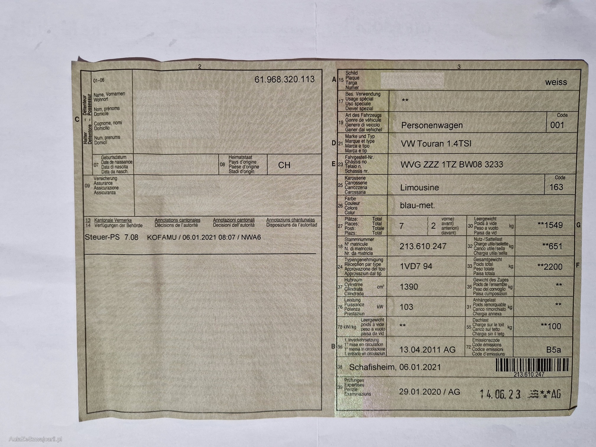 | VIN | WVGXXX |