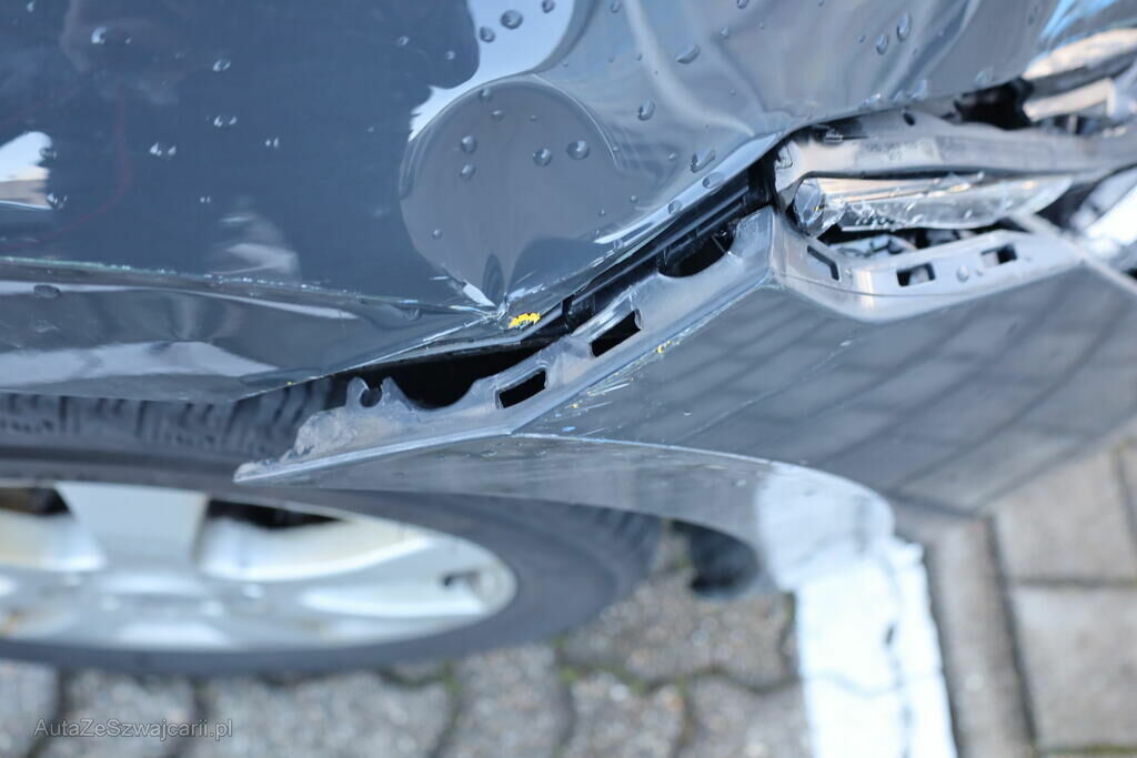 Anprall an die rechte Fahrzeugfront mit Deformation von Stossfänger, Scheinwerfer, Motorhaube, Kotflügel, Strebe sowie Halterungen.