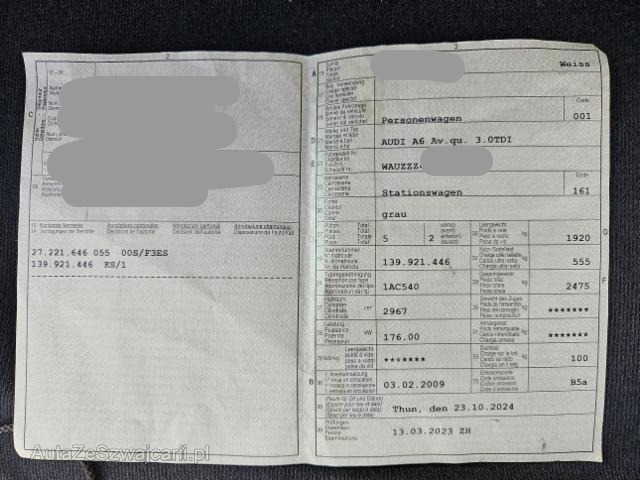 | Condition_and_Equipment | Zustand Fahrzeug ist fahrbar. Sonstiges Fahrzeugdokumente vorhanden. Schlüssel Nur ein Schlüssel vorhanden. Kategorie Das Fahrzeug wird vom Besitzer noch benutzt. --- Front Front links eingedrückt. Weitere Beschädigungen - Alle Felgen leicht beschädigt --- Serienaustattung Klimaautomat 3-Zonen mit Staub und Pollenfiter Sitzheizung für Vordersitze Durchladesystem inkl. Skisack Tempostat Aussenspiegel elektrisch verstellbar und heizbar Nebelscheinwerfer Diebstahlwarnanlage mit Innenenraum-Überwachung Airbag Fahrer und Beifahrerseite Seitenairbag Fahrer und Beifahrerseite Zentralverriegelung mit Fernbedienung Elektronische Wegfahrsperre Servotronic Lenksäule mit Höhen- und Längseinstellung Seitliches Kopfairbagsystem SIDEGUARD Elektrische Fensterheber vorne + hinten Dachreling blank Scheinwerfer Reinigungsanlage ABS und EBV Elektr. Bremskraftverteilung Bremsassistent EBA ESP Elektronisches Stabilitätsprogramm ASR und EDS Antriebsschlupfregelung und Differrentialsperre Fahrerinformationssystem/ Bordcomputer Wärmeschutzverglasung Dieselpartikelfilter DPF Regensensor Vordersitze 4-fach manuell verstellbar Rücksitzlehne geteilt 1/3 oder 2/3 / umklappbar Grösserer Kraftstofftank Elektromechanische Parkbremse Pack Glanz Sitzbezüge in Stoff Meridian Dekoreinlagen in Aluminium Radial Leichtmetallräder 17" 7-Arm Design 225/50 MMI Radio Keine Gewähr auf die Angaben der Serienausstattungen Sonderausstattung Lendenwirbelstützen elektr. für Vordersitze Dachhimmel schwarz/ Stoff Tiptronic Multifunktions-Sportlenkrad 3-Speichen in Leder Metallic-/ Perleffekt-Lackierung Klimaautomat plus mit Staub und Pollenfilter Lichtpaket Automatisch abblendbarer Innenspiegel Bose Surround Sound System Xenon-Plus-Scheinwerfer inkl. Waschanlage Radioempfang digital DAB Park-System vorne + hinten Autotelefon Bluetooth Audi music interface MMI Navigation plus |