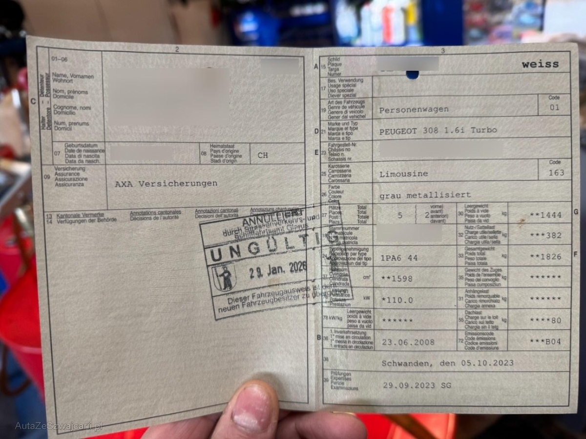 | Fahrzeugausweis | Vorhanden |