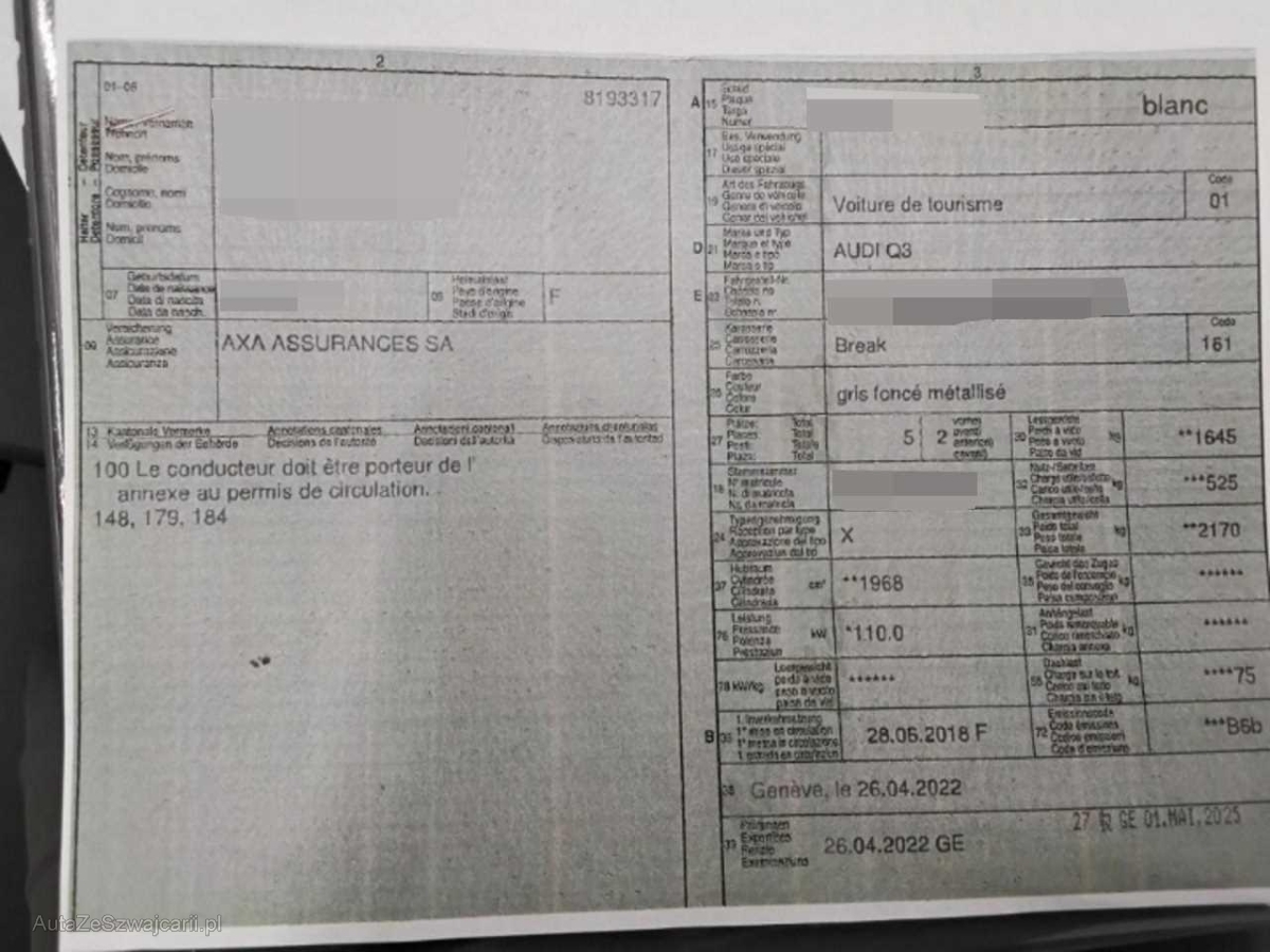| Fahrzeugausweis | Vorhanden |