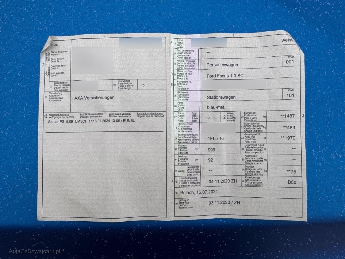 | Fahrzeugausweis | Vorhanden |
