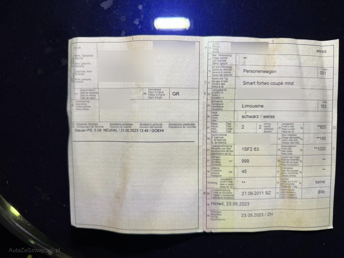 | Fahrzeugausweis | Vorhanden |