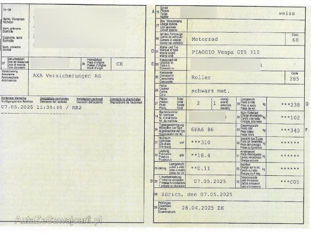 | Fahrzeugausweis | Vorhanden |