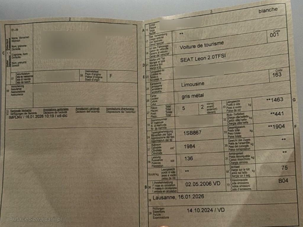 | Fahrzeugausweis | Vorhanden |
