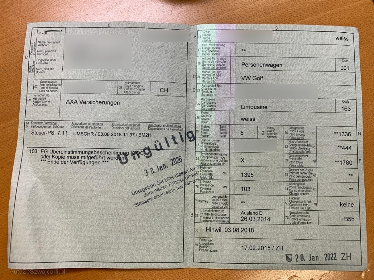 | Fahrzeugausweis | Vorhanden |