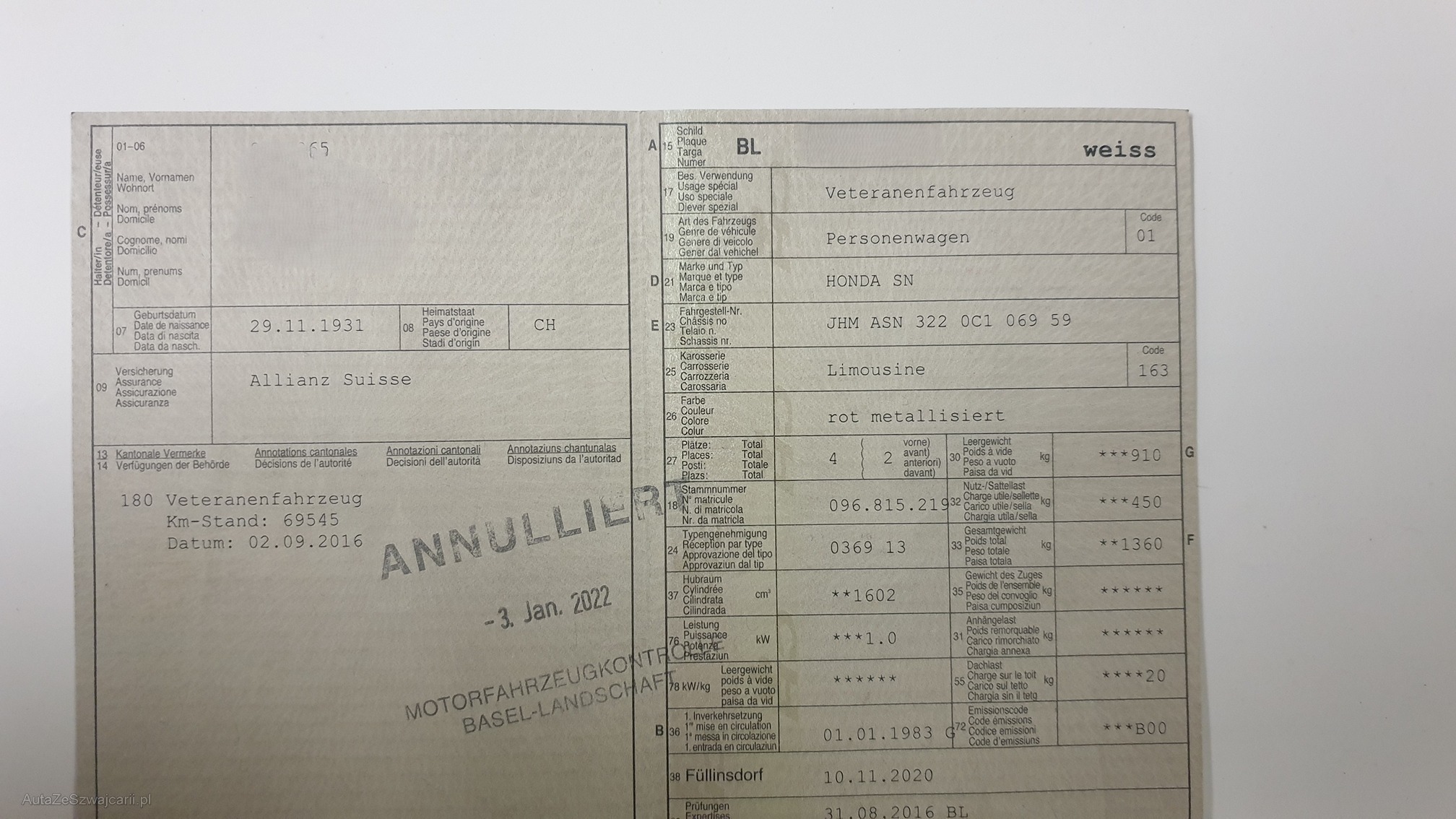 | Kommentar | Bilder vom Kunden gemacht _ Am Fahrzeug wurde kein Werkstatttest gemacht (Für sichtbare oder nicht sichtbare Mängel wird nicht gehaftet). Wir testen & kontrollieren nicht alle Funktionen vom Fahrzeug. Das Risiko liegt somit vollumfänglich beim Käufer. Nachdem der Höchstbietende den Zuschlag erhalten hat, gibt es keine Nachverhandlung, auch wenn nicht deklarierte Mängel zum Vorschein kommen sollten. Ab Platz ohne Garantie, die Gewährleistung ist vollständig ausgeschlossen, damit insbesondere auch Wandelung und Minderung. |