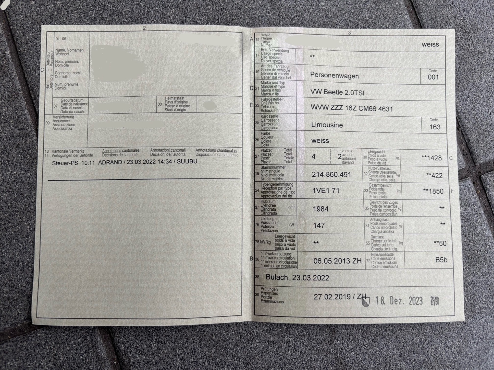 | Kommentar | Oelverlust: - Turbolader Rücklauf ( Siehe Bilder ) Carrosserie: - Dachholm links leichte Dellen ( Drucktechnik ) - Stossfänger-Abdeckung hinten links ( Kann ausgebessert werden ) - Kotflügel hinten rechts leichte Dellen ( Drucktechnik ) -- Am Fahrzeug wurde kein Werkstatttest durchgeführt. Für Sichtbare, sowie nicht Sichtbare Mängel wird nicht gehaftet, da wir nicht alle Funktionen am Fahrzeug prüfen. Das Risiko liegt vollumfänglich beim Käufer. Nachdem der Höchstbietende den Zuschlag erhalten hat, gibt es keine Nachverhandlung, auch wenn nicht deklarierte Mängel zum Vorschein kommen sollten. Jede Gewährleistung, soweit nach Gesetz möglich, wird wegbedungen. Insbesondere sind Wandelung und Minderung ausgeschlossen. |