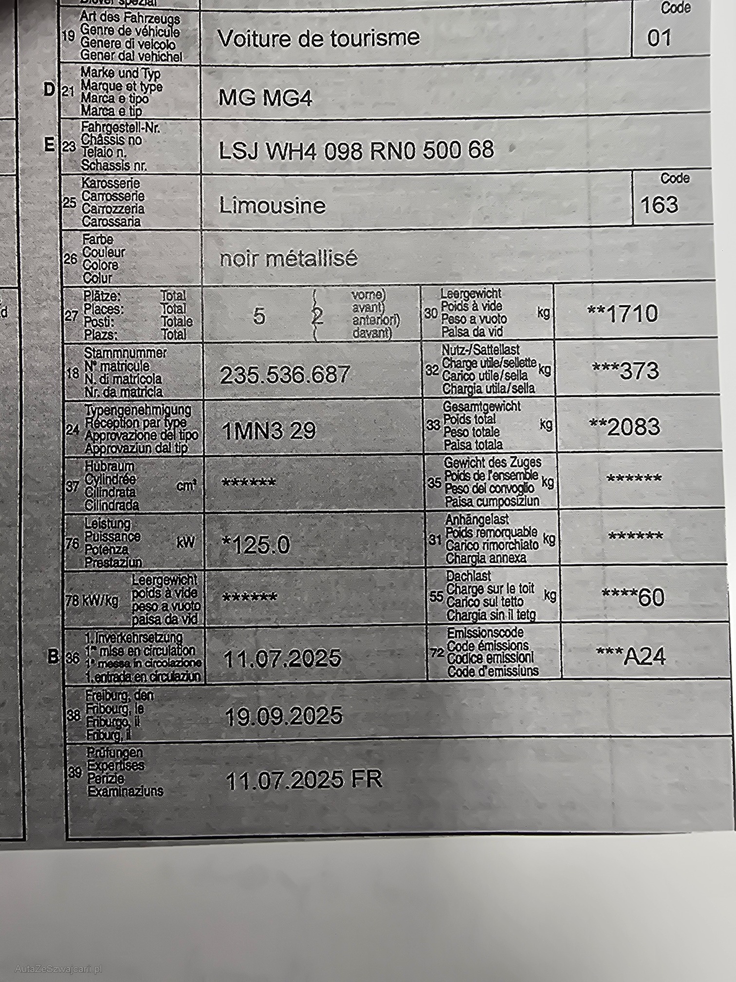 | Kommentar | Véhicule neuf |