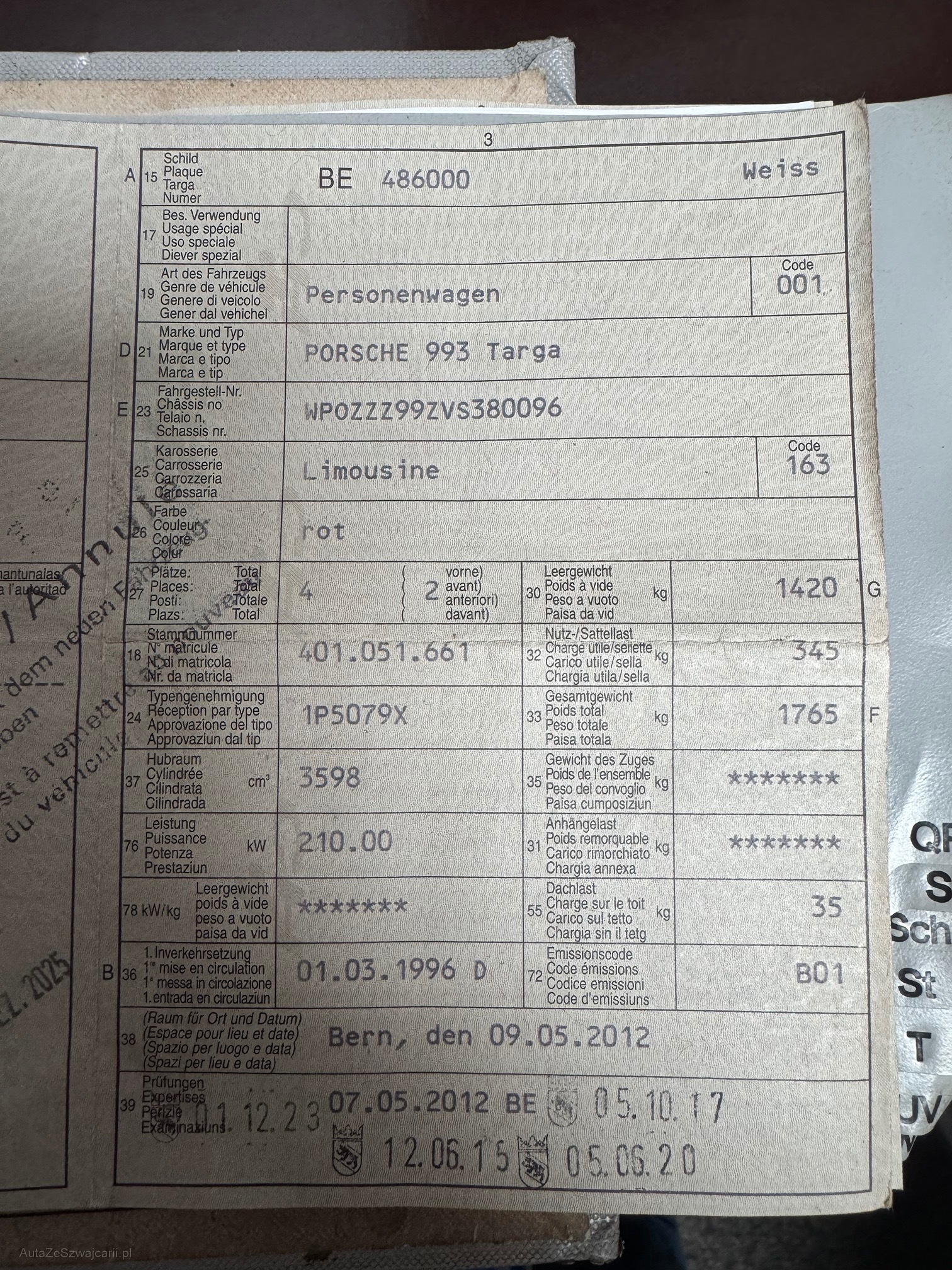 | VIN | WP0XXX |
