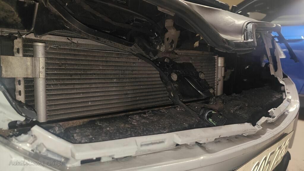 Komplette Front mit beiden Scheinwerfer und Haube stark beschädigt.