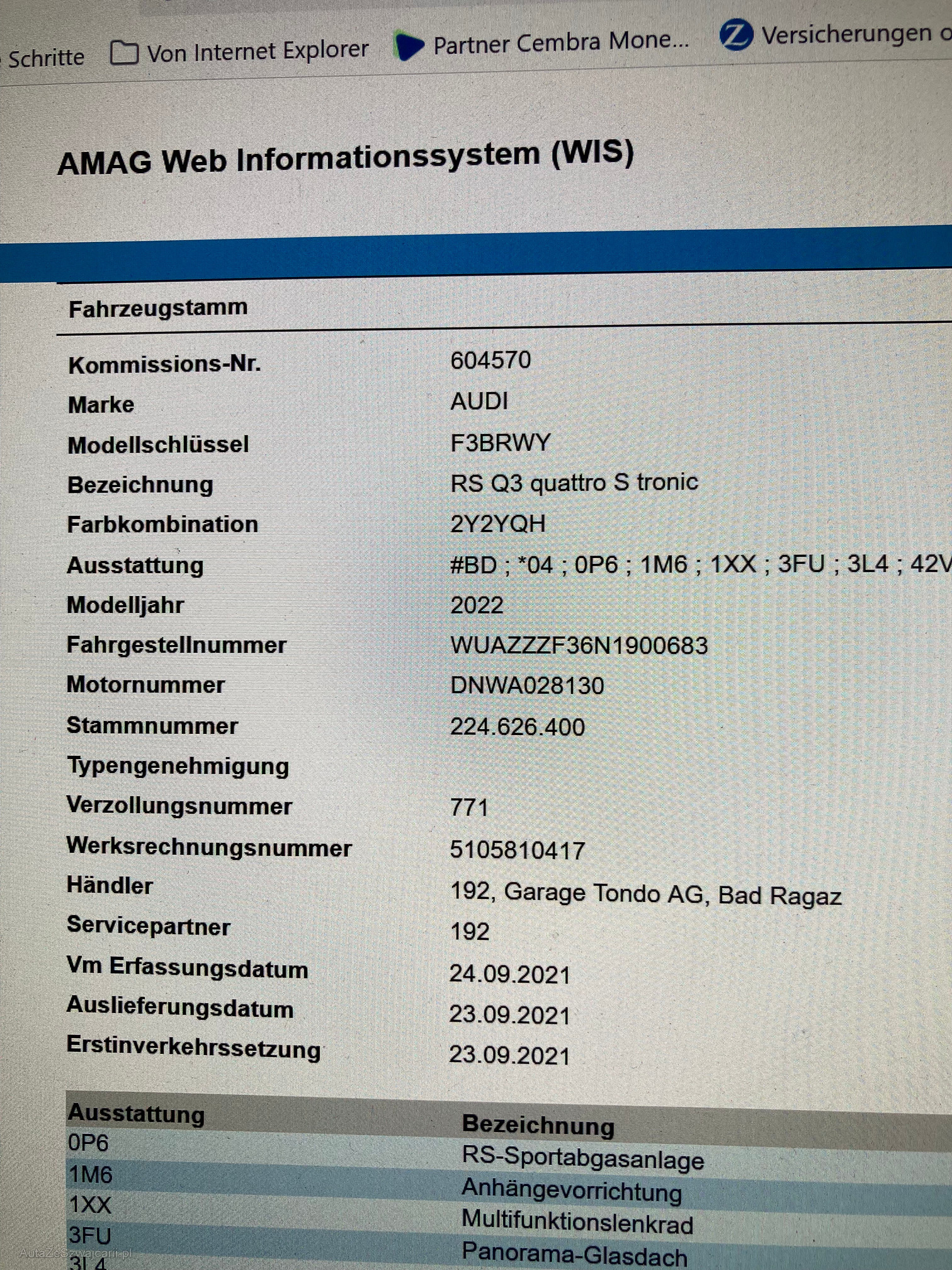 | VIN | WUAXXX |