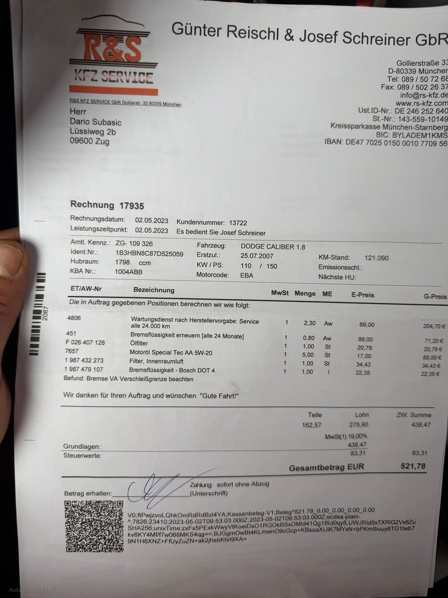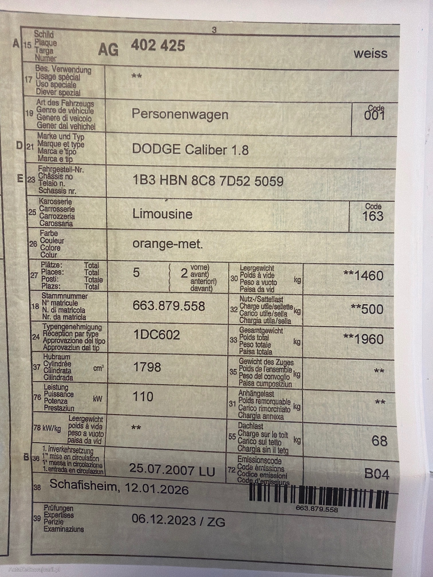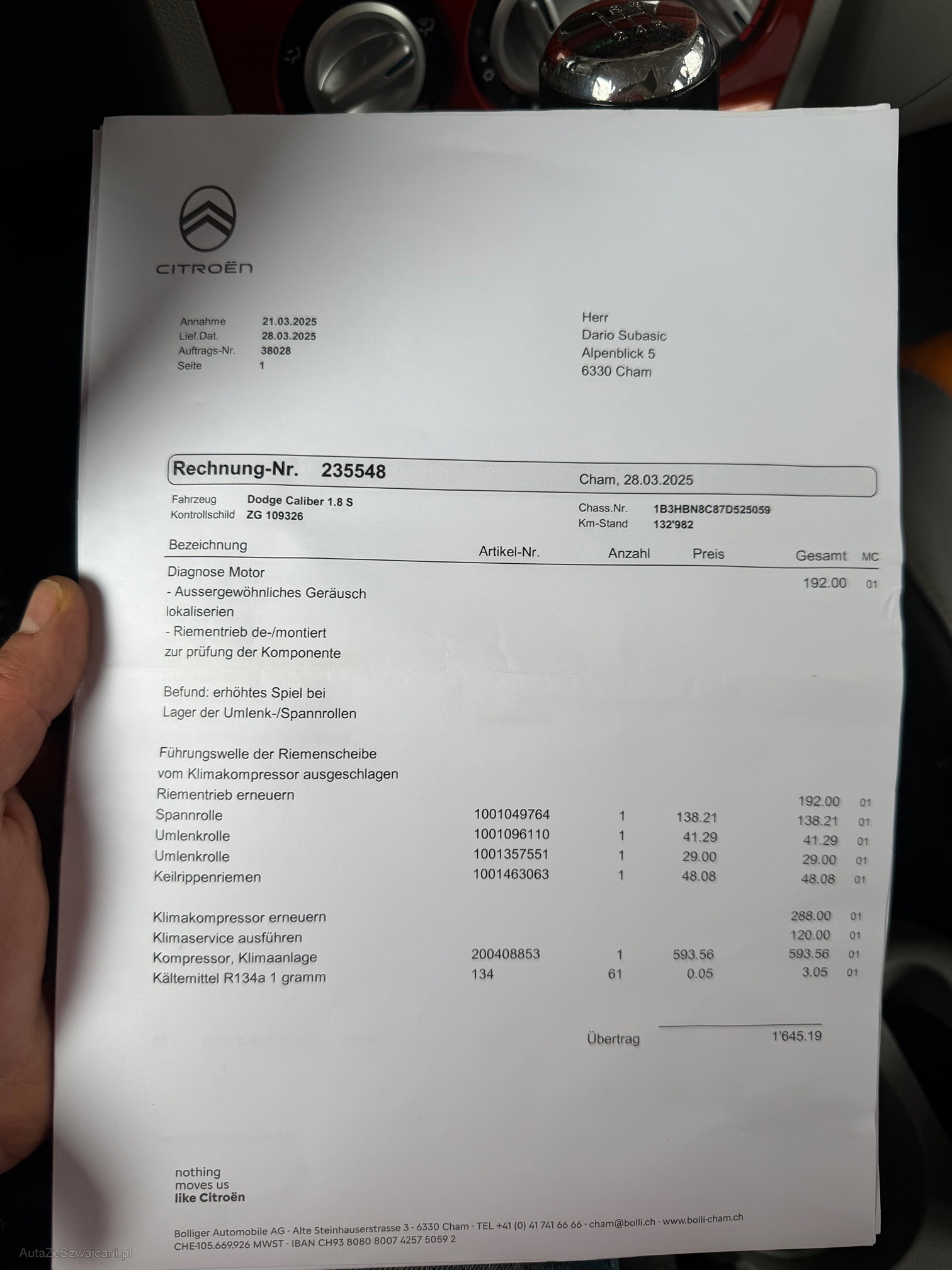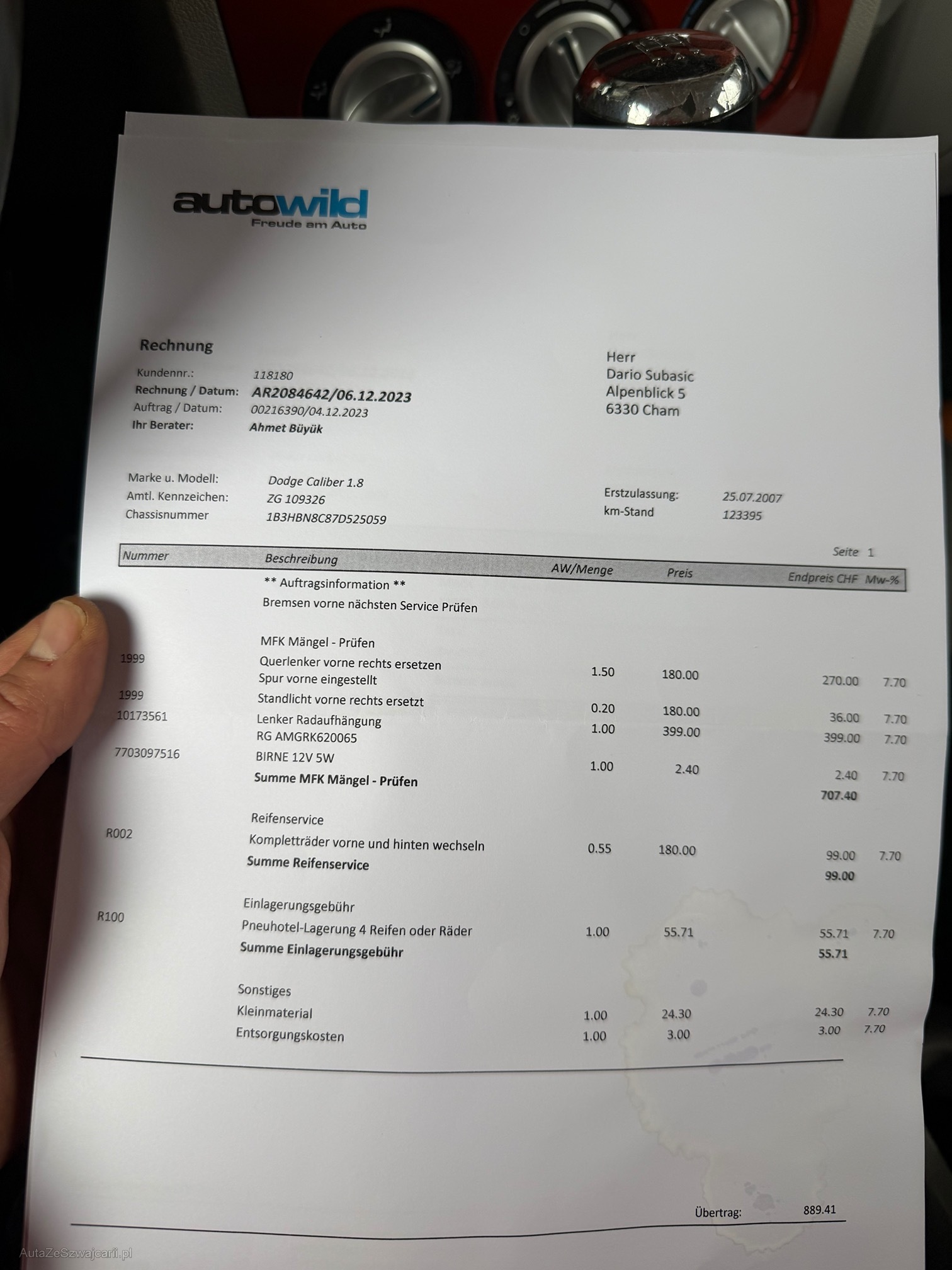 | Kommentar | kurze Probefahrt gemacht alles Funktioniert. Fährt sich sehr schön. Stossdämpfer vorne macht Geräusch (EINE SCHON GEWESCHSELT) Sehr viel Geld investiert in letzte Zeit, Rechnungen BEIGELEGT Macht sehr saubere Eindruck Karoserie hat Gebrauchtspuren wie auf dem Bilder ersichtlich ist Am Fahrzeug wurde kein Werkstatttest gemacht (Für sichtbare oder nicht sichtbare Mängel wird nicht gehaftet). Wir testen & kontrollieren nicht alle Funktionen des Fahrzeugs. Das Risiko liegt somit vollumfänglich beim Käufer. Ab Platz ohne Garantie, Wandelung und Minderung werden wegbedungen. Stossstange vorne zerkratzt, Nach erteilte Zuschlag muss Fahrzeug innerhalb 4 Arbeitstage abgeholt und Bar bezahlt werden. Sonst wird Parkplatz CHF 30.- / Tag verrechnet |