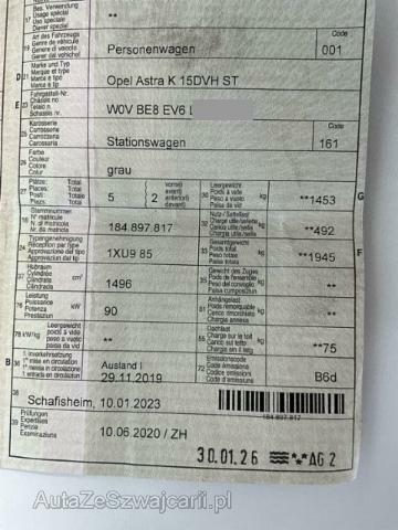 | Condition_and_Equipment | Demontage Innenausstattung wird demontiert. Weitere wichtige Hinweise Ohne Kindersitze. Kilometerstand = Angabe der Fahrzeugbesitzerin. --- Sonstige Schäden Div.Carrosserie Teile sind leicht beschädigt. --- Serienaustattung Airbag Fahrer und Beifahrerseite Elektrische Fensterheber vorne + hinten ABS Antiblockiersystem Seitenairbag Fahrer und Beifahrerseite Zentralverriegelung mit Fernbedienung Höhenverstellbarer Fahrersitz Lederlenkrad Reifendruck-Kontrollsystem RDK Radiobedienung am Lenkrad Rücksitzbank geteilt abklappbar 60/40 3 Kopfstützen hinten Kopfairbag vorne und hinten Elektronische Traktionskontrolle TcPlus Elektronischer Geschwindigkeitsregler Bremsassistent EBA Dachreling silber Aussenspiegel elekt. verstellbar/ heizbar manuell anklappbar Dieselpartikelfilter Kindersitz-Vorbereitung Isofix hinten Reifen-Pannenset Servolenkung geschwindigkeitsabhängig Elektronisches Stabilitätsprogramm ESP Plus Berganfahrassistent Zweizonen Klimaautomatik Pack Sicht Parkbremse elektrisch Stop + Start System Ergonomic Sport Seat AGR Fahrer Fensterzierleisten verchromt Keine Gewähr auf die Angaben der Serienausstattungen Leichtmetallfelgen 16" Multi-Speichen Rückfahrkamera LED Tagfahrlicht Digitaler Radioempfang DAB+ Mittelkonsole mit Armlehne vorne LED-Scheinwerfer Multimedia Radio Pack Light Pack Driver Assistance 1 Frontkamera Sonderausstattung 2-Schicht Metallic Lackierung |