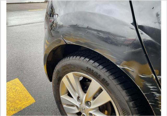 | Condition_and_Equipment | Zustand Fahrzeug ist fahrbar. Bereifung Fahrzeug wird mit Winterräder abgegeben. Sonstiges Fahrzeugdokumente vorhanden. Schlüssel Nur ein Schlüssel vorhanden. --- Rechts Schweller rechts ist eingedrückt. Tür hinten rechts ist eingedrückt. Heck Seitenwand hinten rechts eingedrückt/aufgestaucht. Weitere Beschädigungen Stossstange hinten rechts beschädigt gemäss Bilder --- Serienaustattung Airbag Fahrer und Beifahrerseite Elektronische Wegfahrsperre Elektrische Fensterheber vorne + hinten Aussenspiegel elektrisch verstellbar und heizbar Bordcomputer Seitenairbag Fahrer und Beifahrerseite ESP Elektronisches Stabilitätsprogramm Nebelscheinwerfer Zentralverriegelung mit Fernbedienung Lenkrad verstellbar Alarmanlage Lederlenkrad mit Lederschaltknauf Leichtmetallfelgen 16" Deaktivierung Beifahrerairbag Aussenspiegel elektrisch anklappbar Audiofernbedienung am Lenkrad Tagesfahrlichtschaltung Isofix-Kindersitzbefestigung Vorhangairbags vorne + hinten Servolenkung geschwindigkeitsabhängig ABS und EBD Elektr. Bremskraftverteilung Höhenverstellbarer Fahrersitz Klimaanlage manuell Berganfahrhilfe Bremsassistent BA Radio/ CD/ MP3/ USB Rücksitze umklappbar 60/40 und verschiebbar Details siehe gültige Preisliste des Importeurs Bluetooth Freisprechanlage mit Spracherkennung Keine Gewähr auf die Angaben der Serienausstattungen Ausstattung Rückfahrsensoren Metallic-Lackierung |