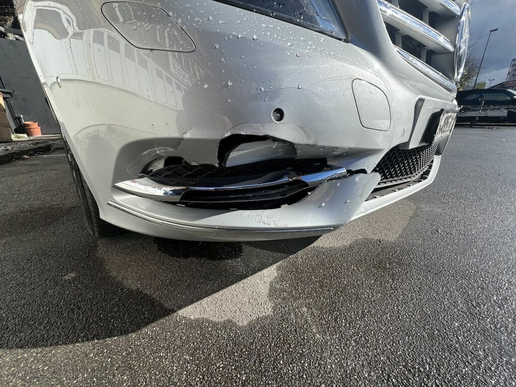 Verkleidung mit Anbauteilen, Luftführung, etc. beschädigt. Druckstellen vorne Klimakondensator. Kühler unten nach hinten gedrückt.