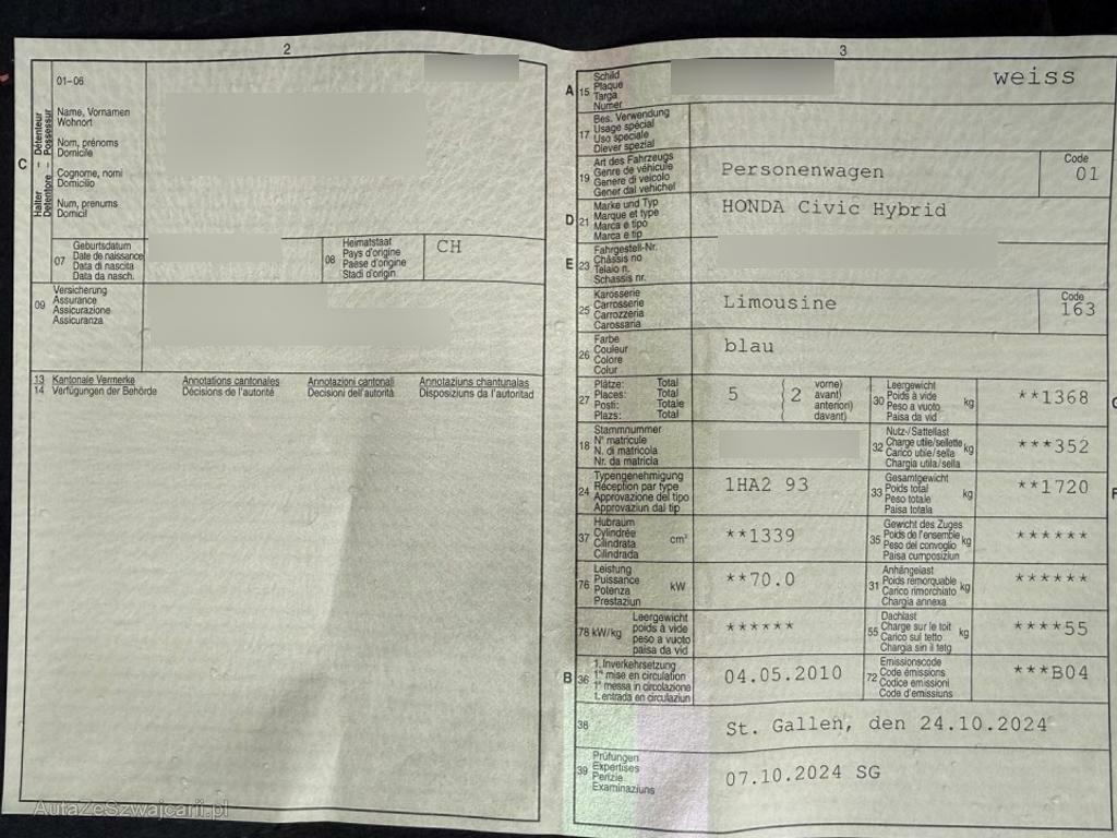 | Fahrzeugausweis | Vorhanden |
