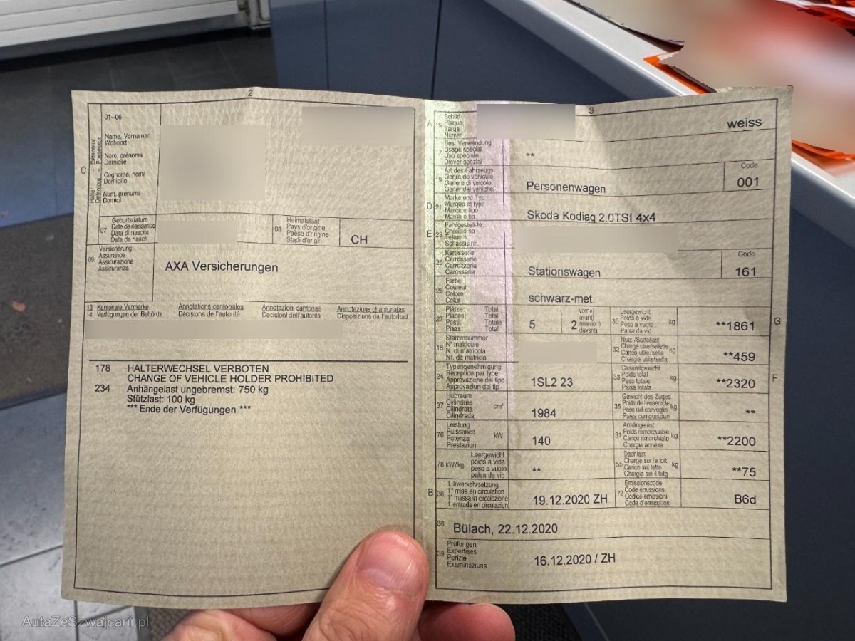 | Fahrzeugausweis | Vorhanden |