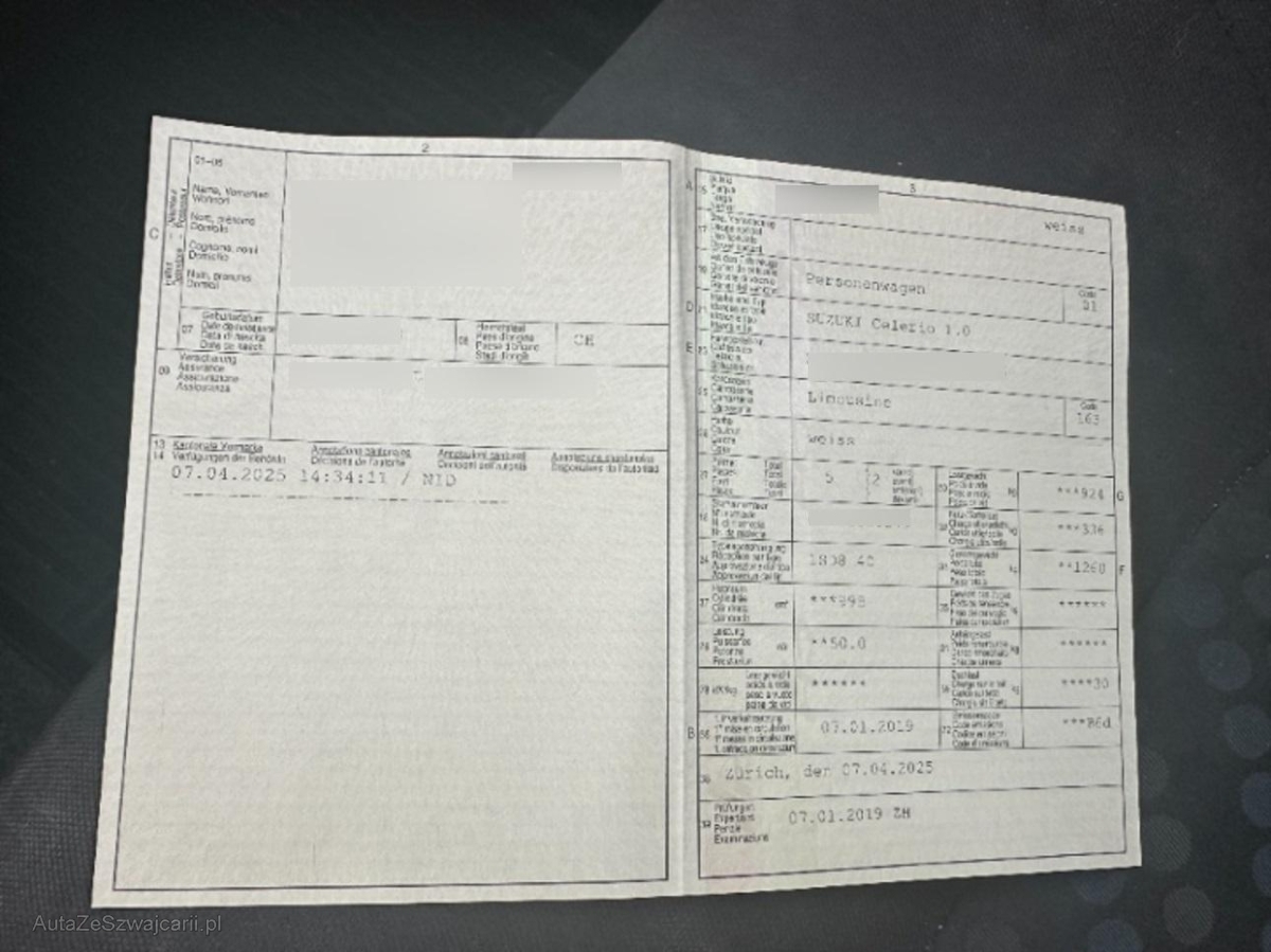 | Fahrzeugausweis | Vorhanden |