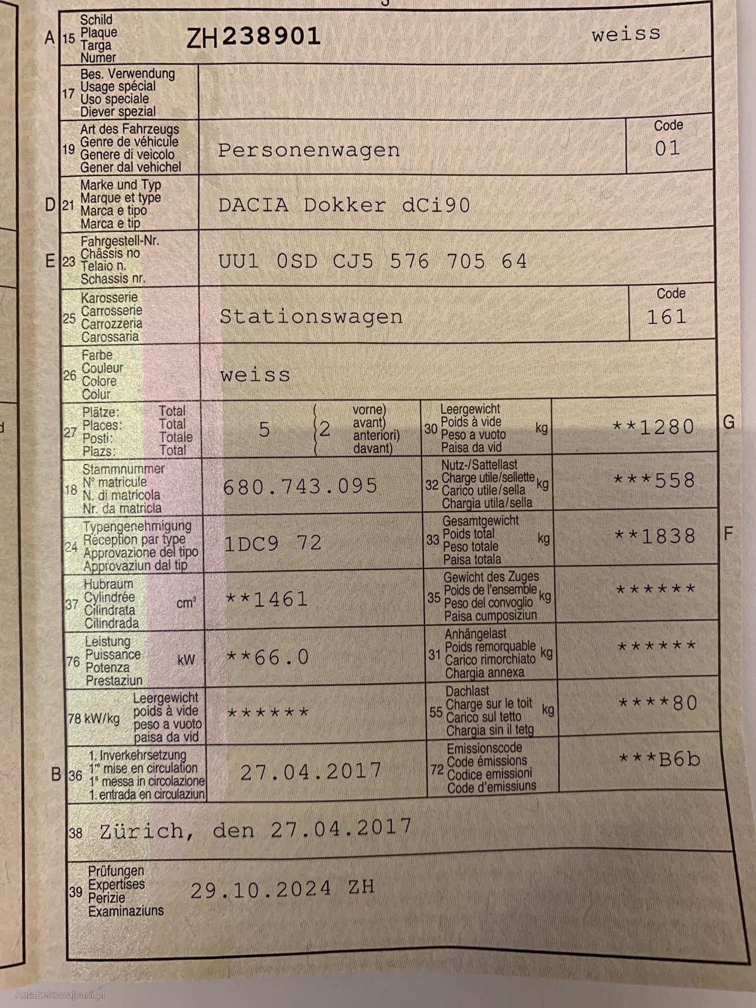 1. rejestracja: 27 kwietnia 2017