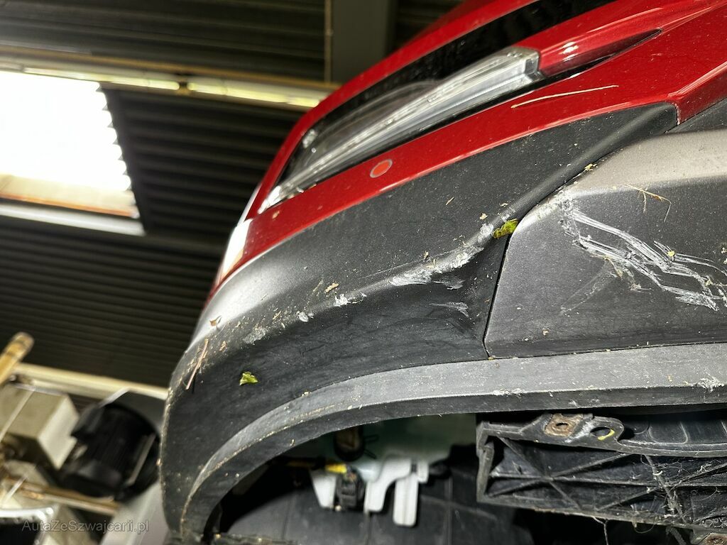 Anprall am Fahrzeugunterboden: Dabei wurden diverse Unterbodenverkleidungen, die Frontverkleidung unterhalb sowie das Frontmodul beschädigt und deformiert.