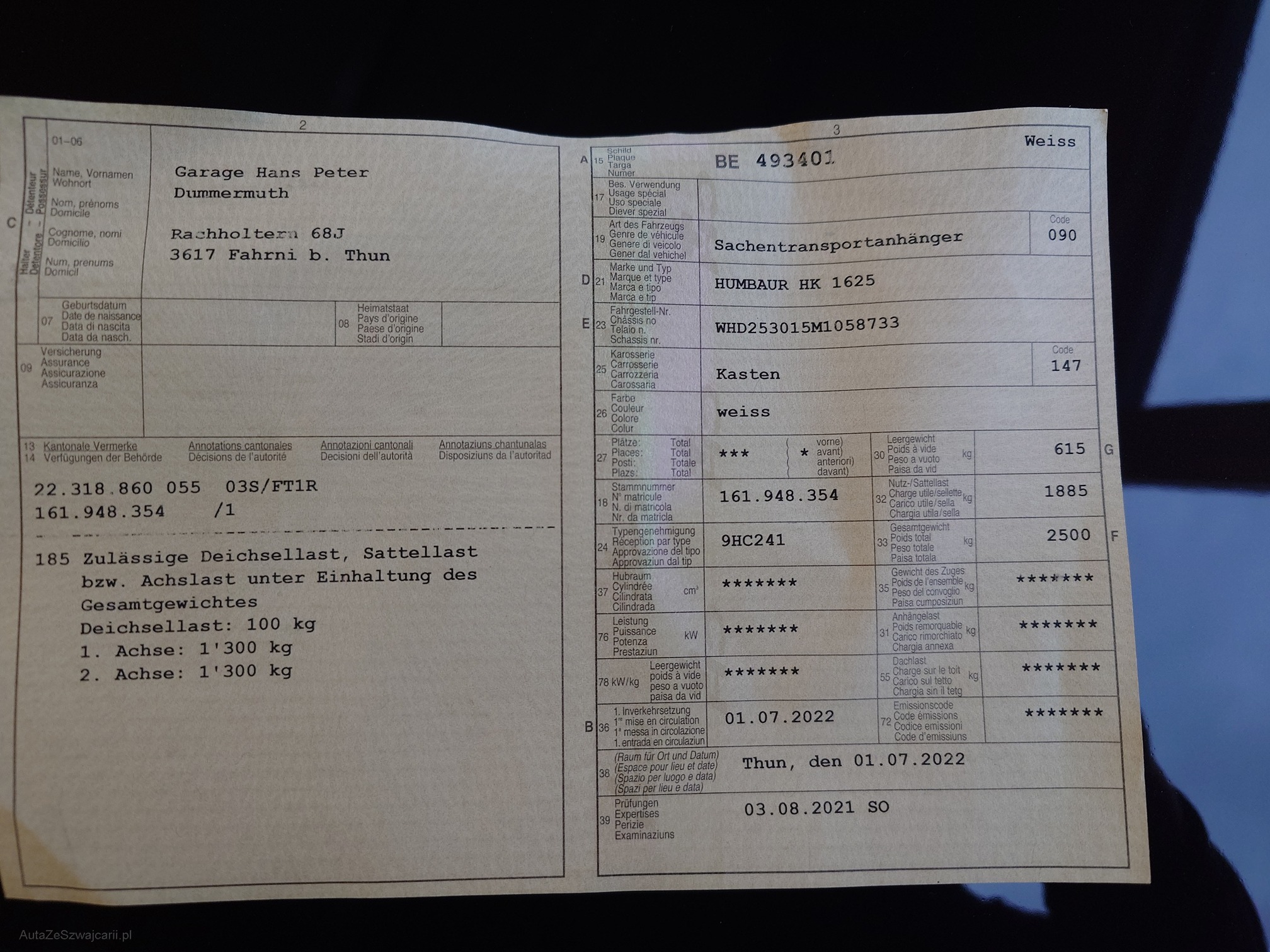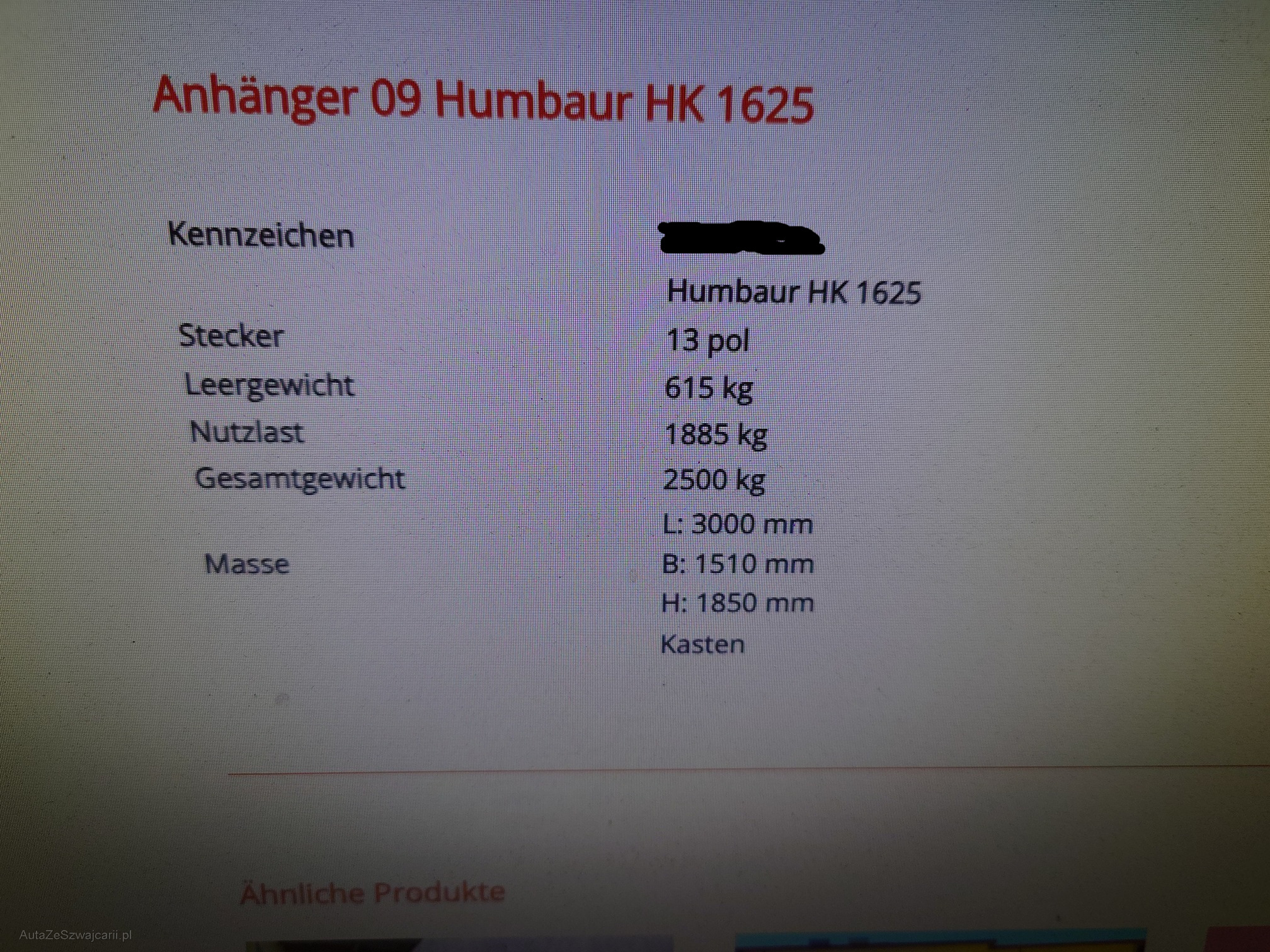 | Kommentar | Anhänger befindet sich im neu Zustand. Sehr wenig gebraucht. Keine Mängel. Anhänger muss nach Zuschlag innert 3 Arbeitstagen abgeholt werden. Ansonsten fallen 30.- pro Tag Parkgebühren an. |