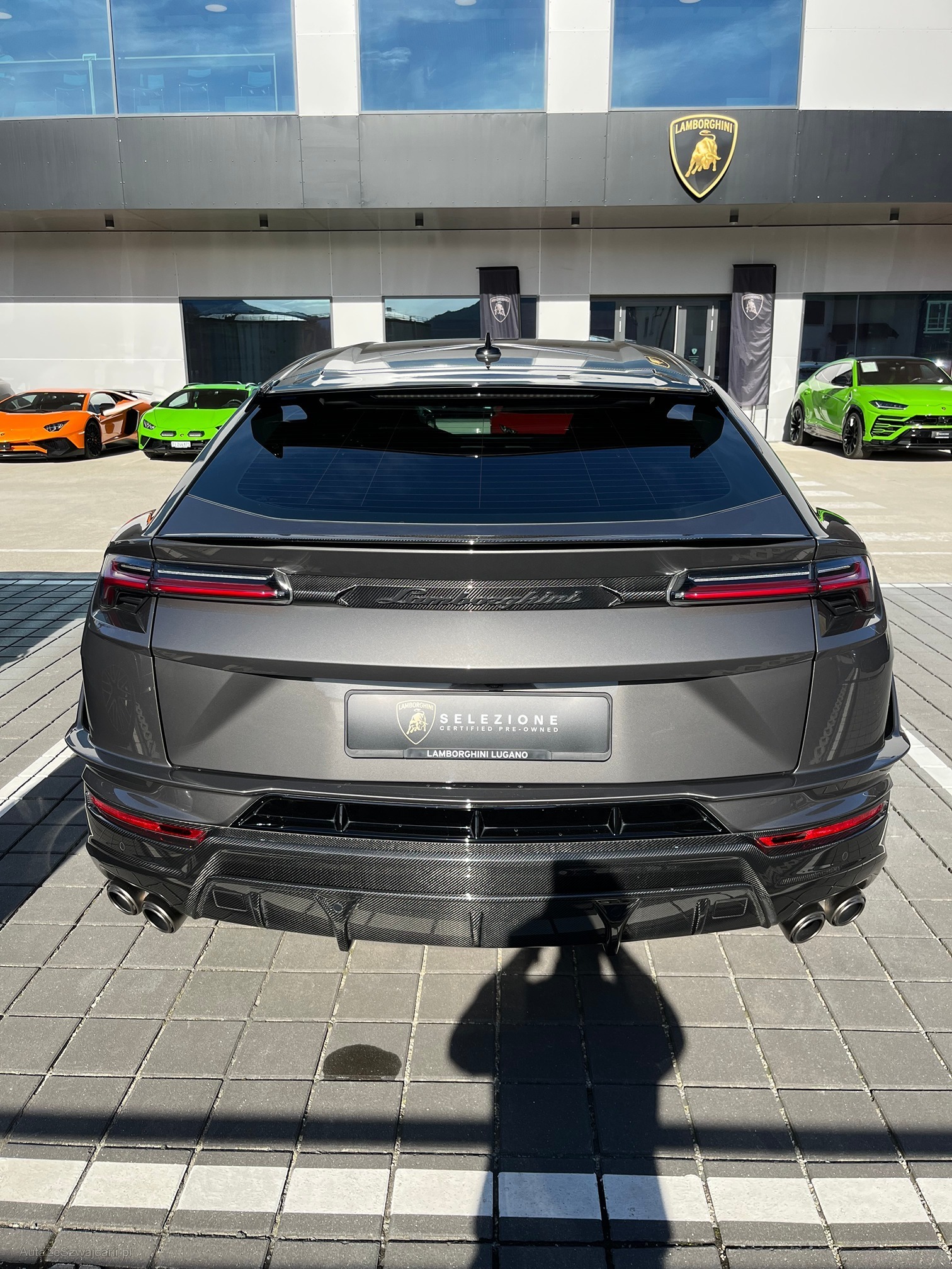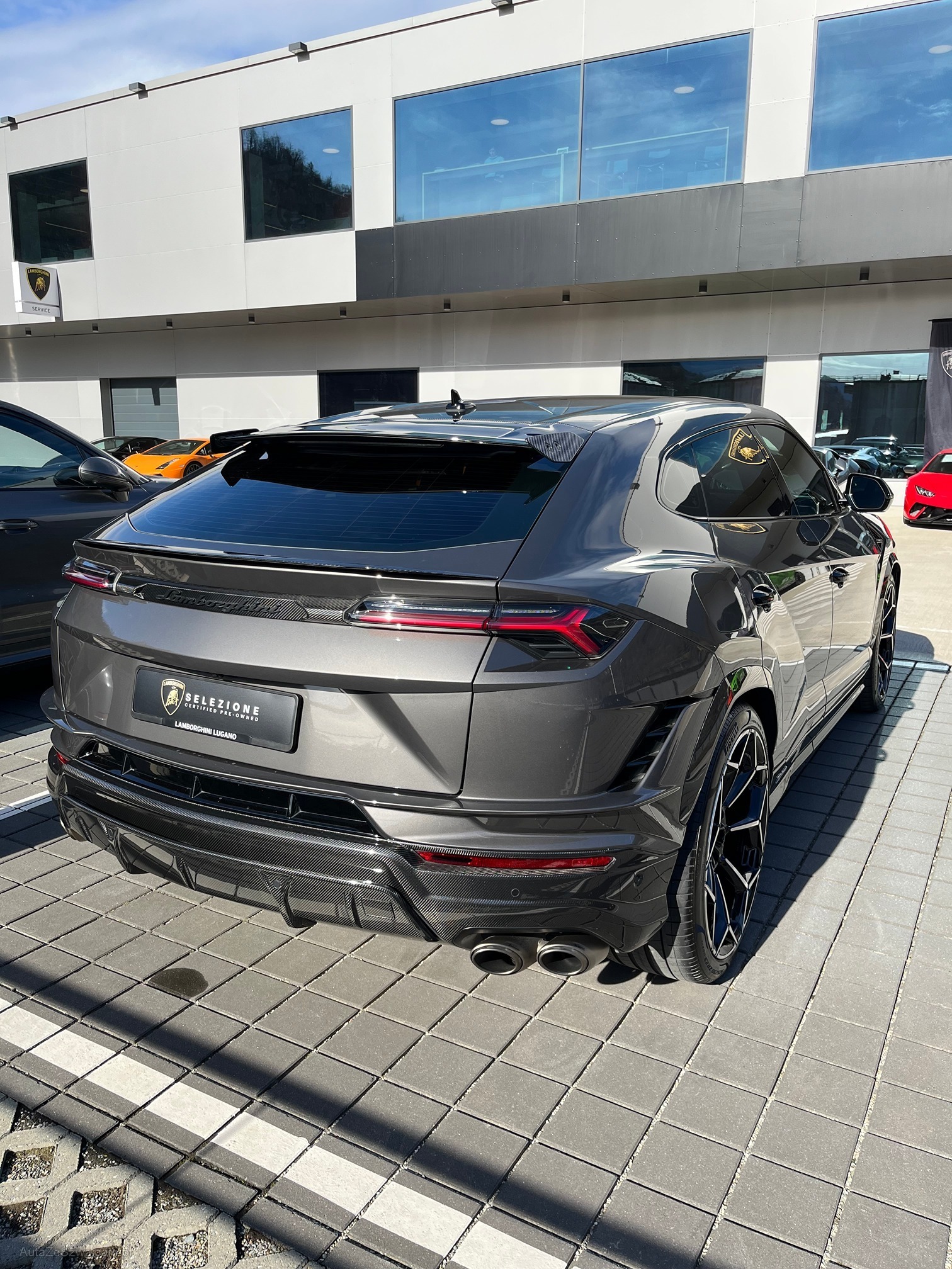 | Kommentar | Lamborghini Urus Performante Auto CH Main Paint - Grigio Keres Met. Unicolor Alcantara with Performante trim Seats in full Alcantara with Performante trim Stitching on steering wheel - Rosso Alala Rims Pelope 23" Diamond finished Shiny Black Titanium wheel bolts Brakes and Calipers Black Calipers Full Exterior Carbon fiber package - Shiny Bonnet in visible Carbon fiber Shiny Roof in Shiny Carbon Rear Lamborghini logo matt black Full Electric Front Seats with ventilation and massage Heated front seats Ambient Light Package Alcantara- headliner Big Interior Carbon Package Advanced Driving Assistant System Full ADAS Package DAB Radio Digital radio Advanced 3D "Bang&Olufsen Sound System" Head-Up Display Premium air quality system |